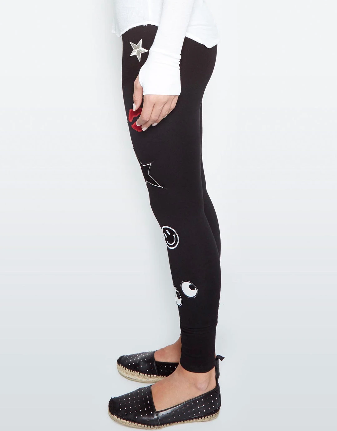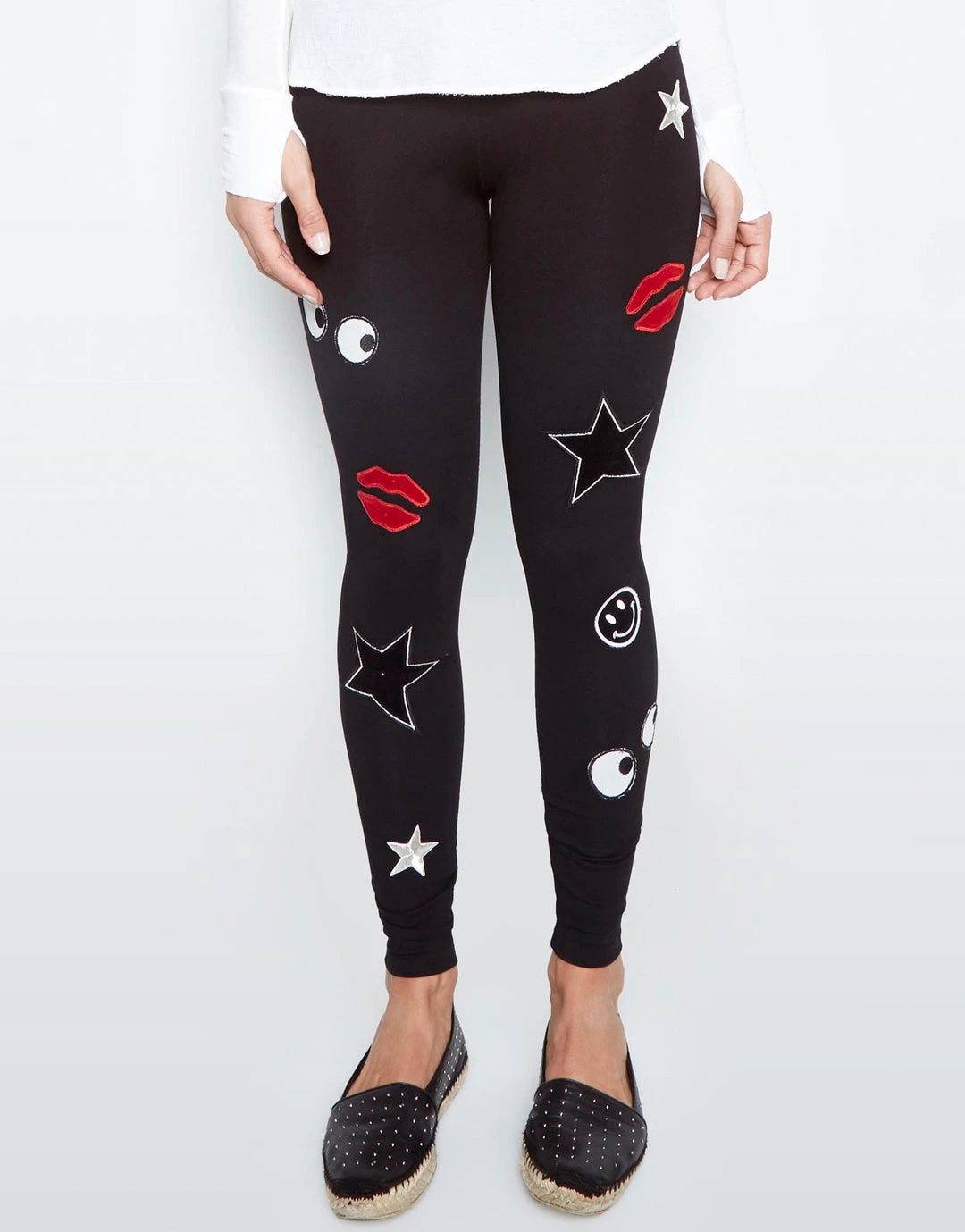 Mini Lip Applique Fitted Legging in Black by Lauren Moshi.