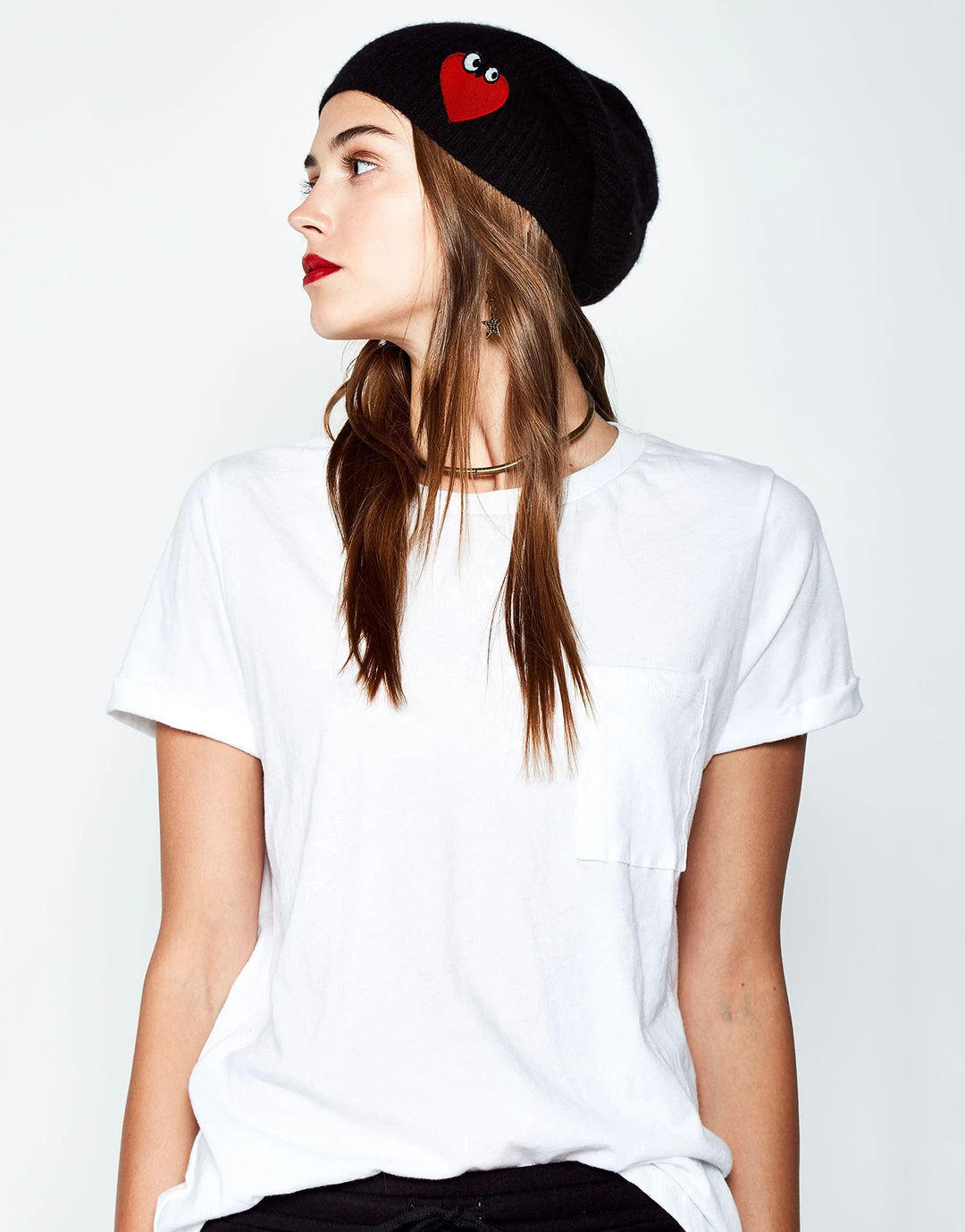 Heartface Patch on Ultra Soft Cashmere Rib Slouch Beanie by Lauren Moshi.