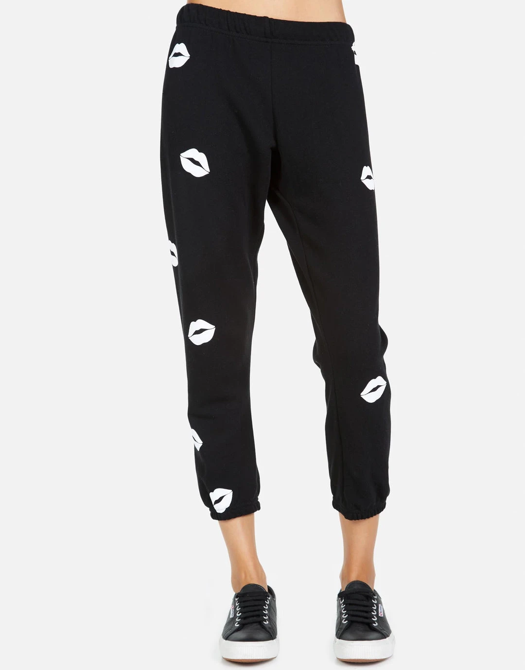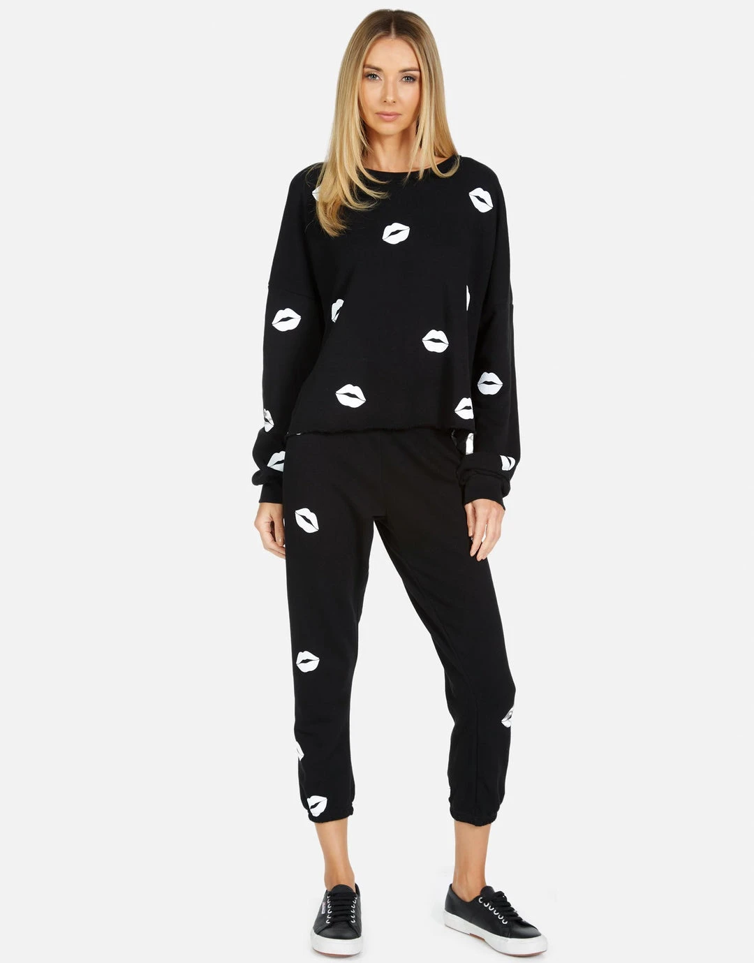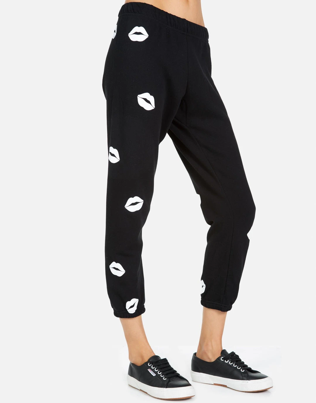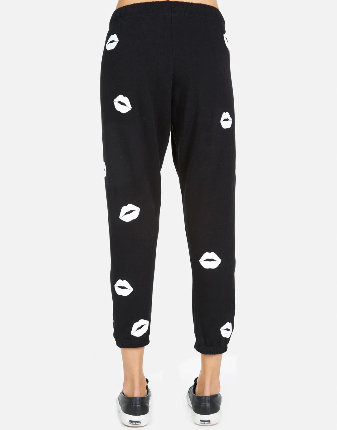 Mini Kisses Printed on Ultra Soft Lightweight Sweatpants in Black by Lauren Moshi.