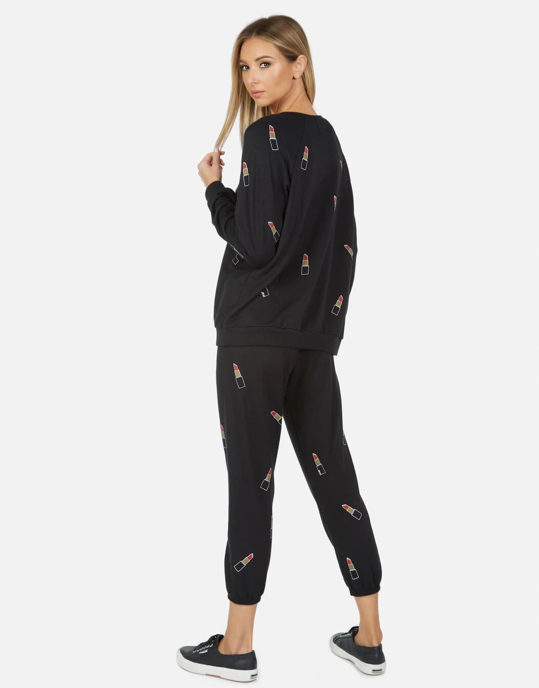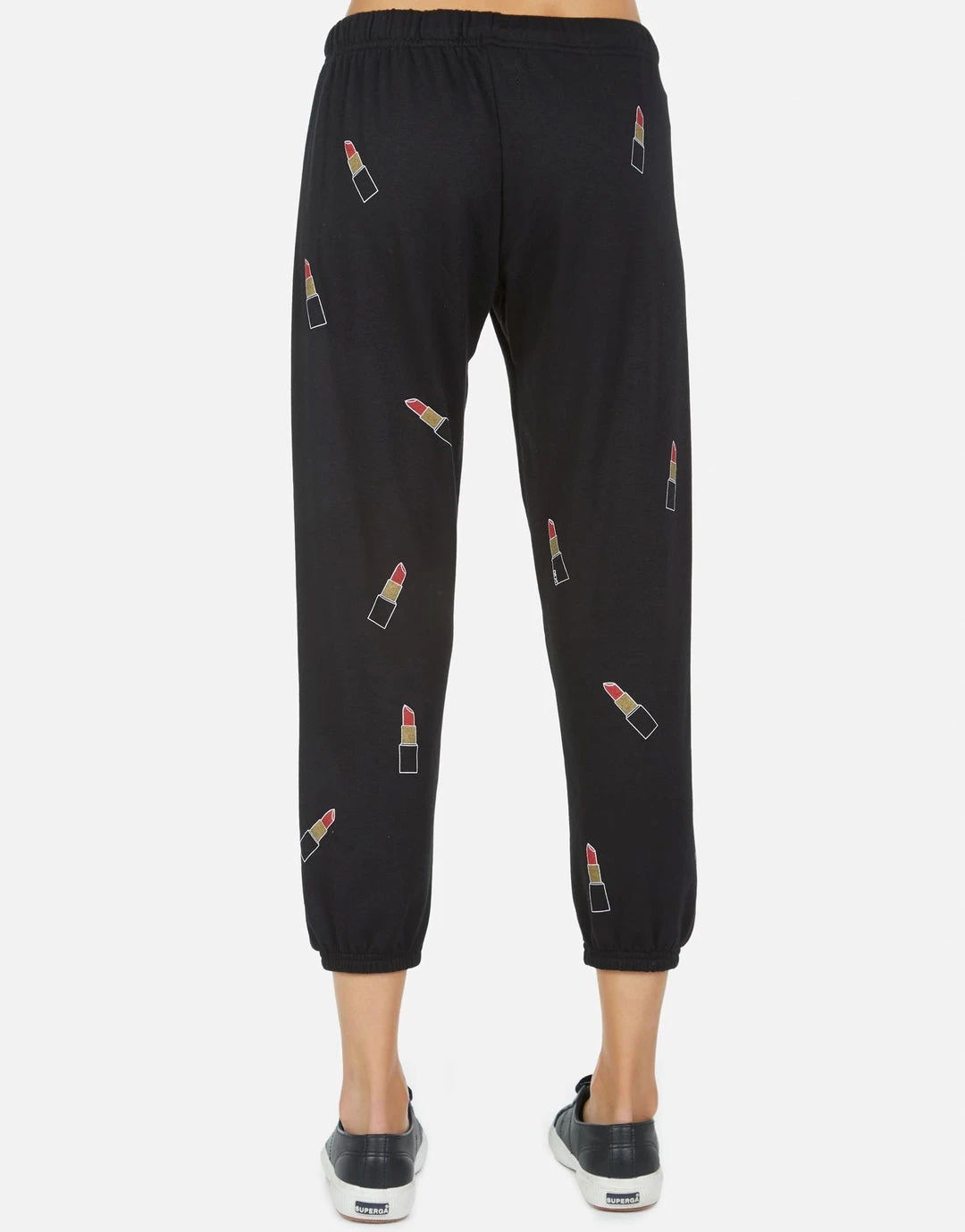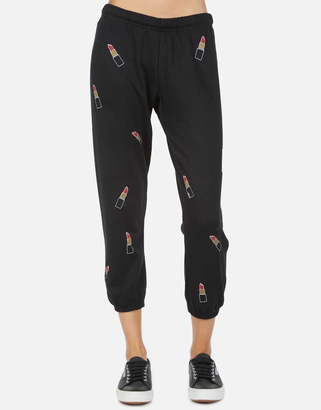 Mini Lipstick Printed on Ultra Soft Lightweight Sweatpant in Black by Lauren Moshi.