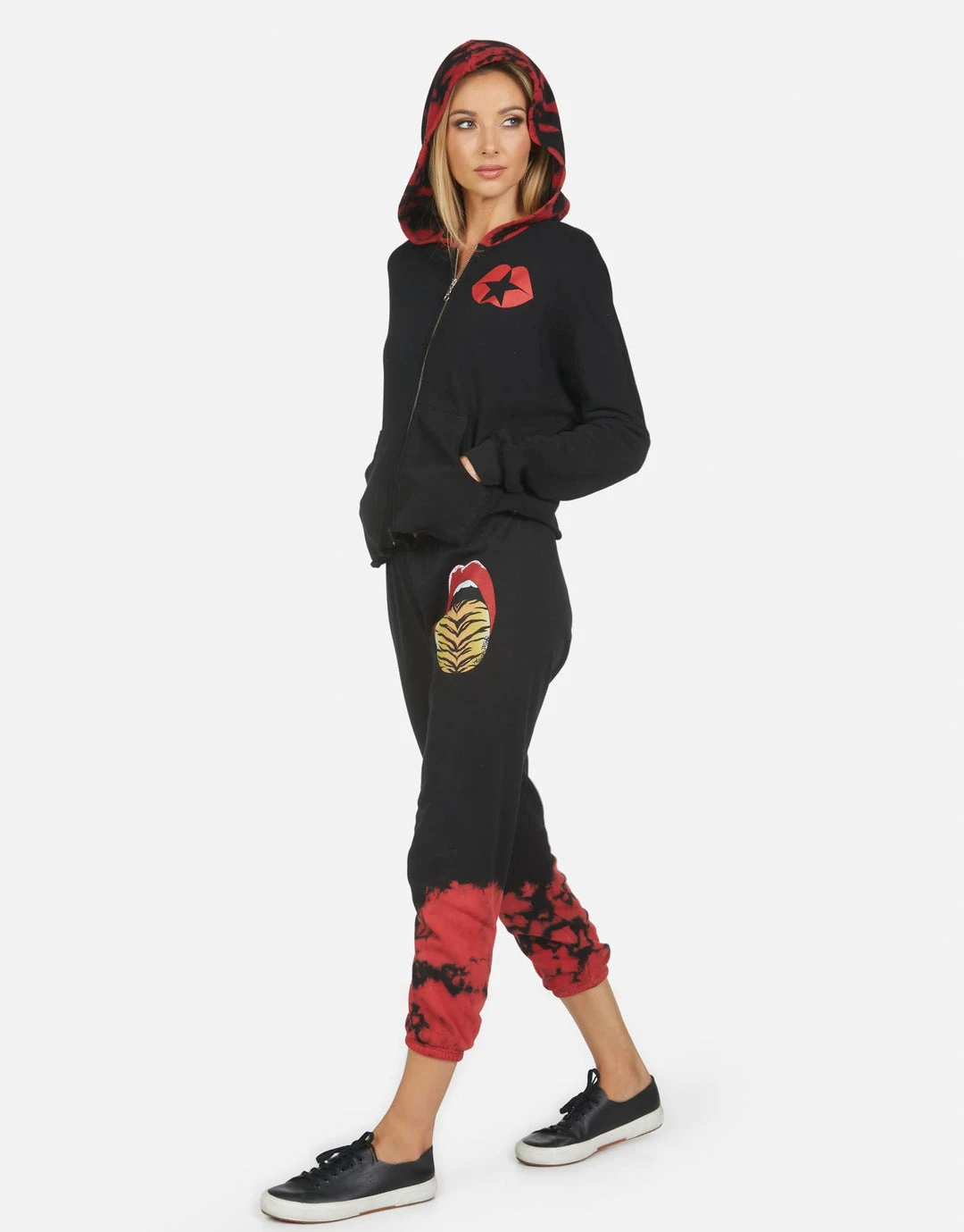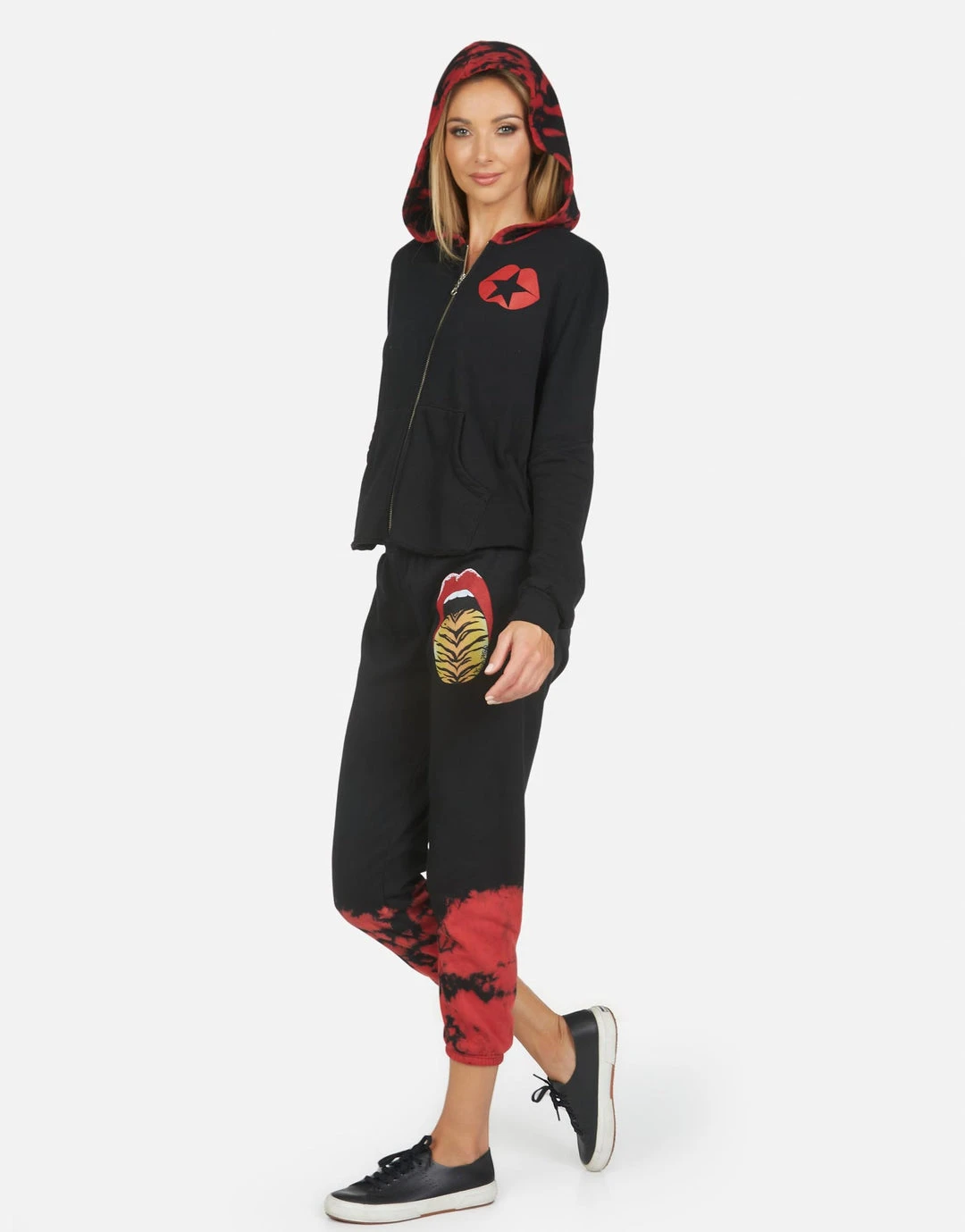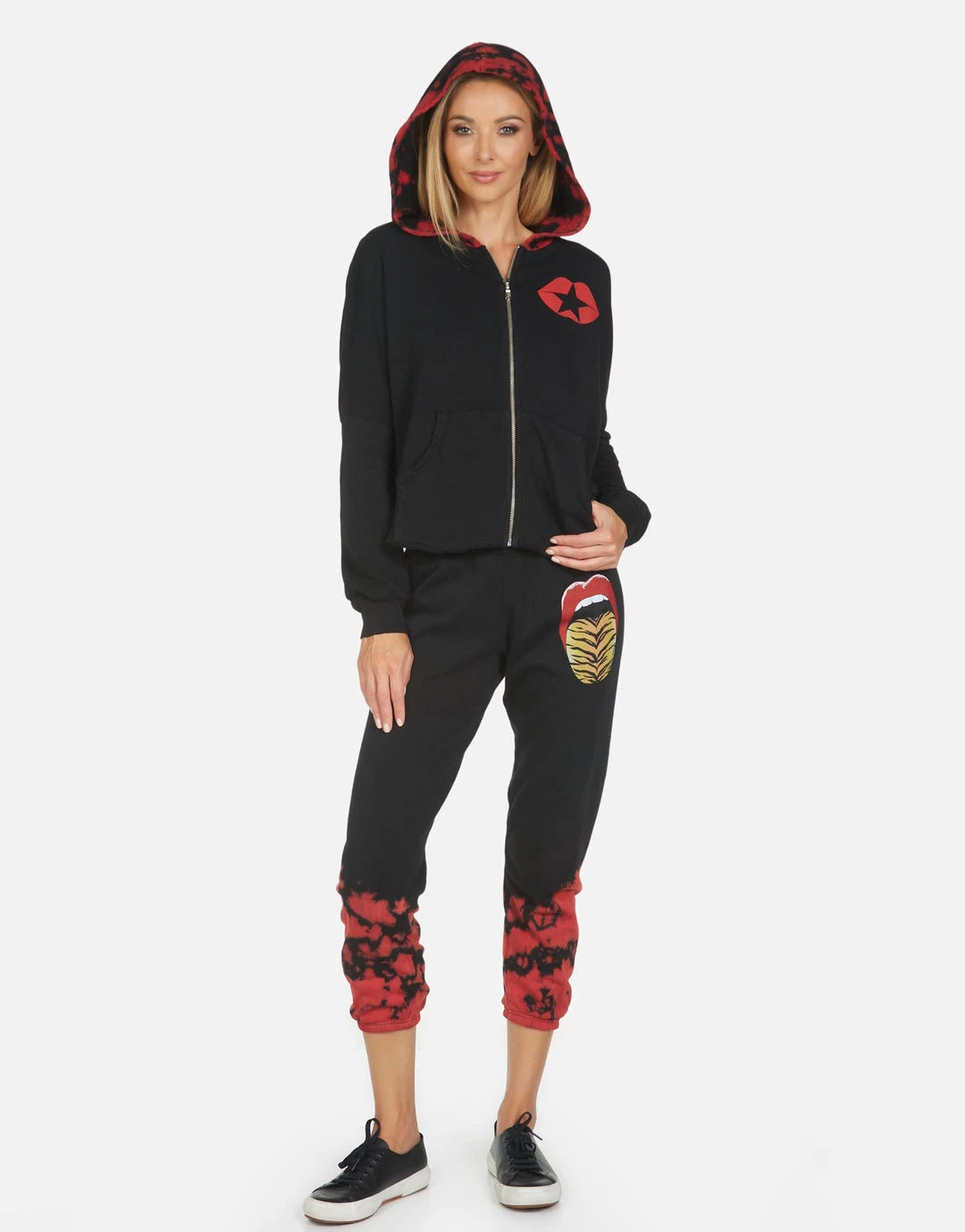 Tiger Tongue on Ultra Soft Lightweight Sweatpant in Black/Lava by Lauren Moshi.