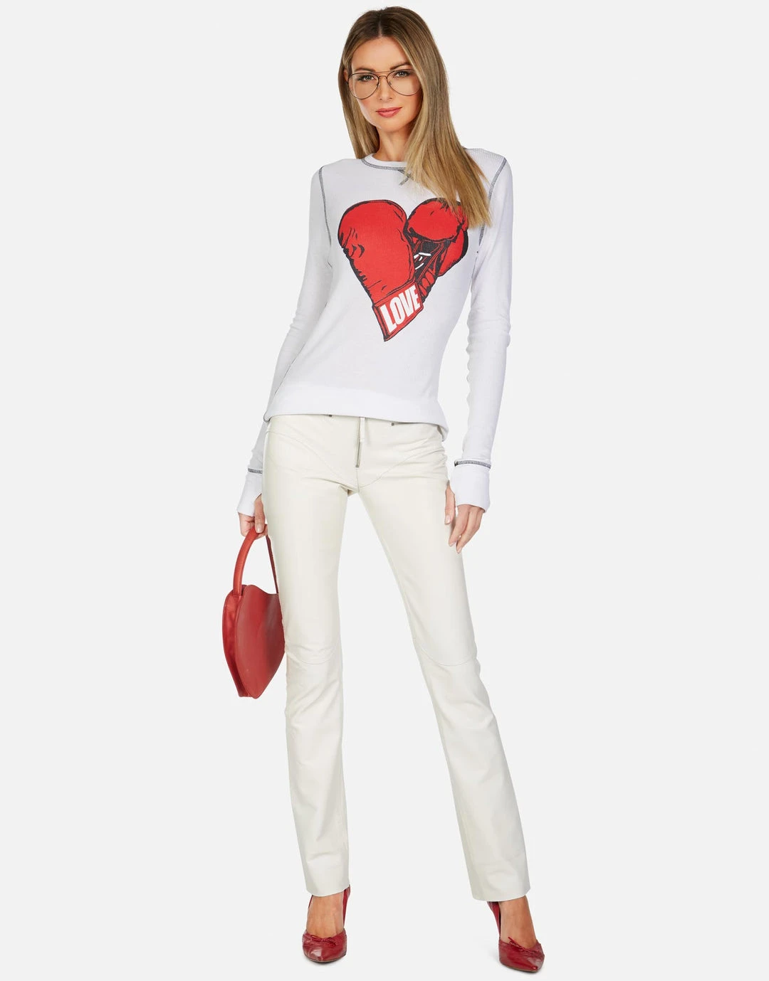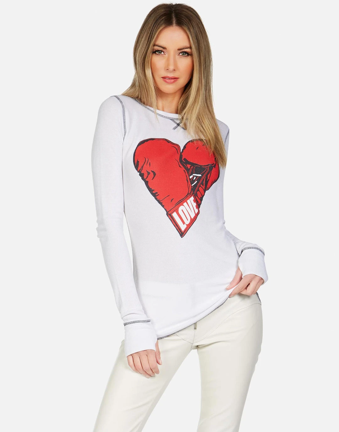 Love Boxing Printed on Ultra Soft Lightweight Thermal in White by Lauren Moshi.