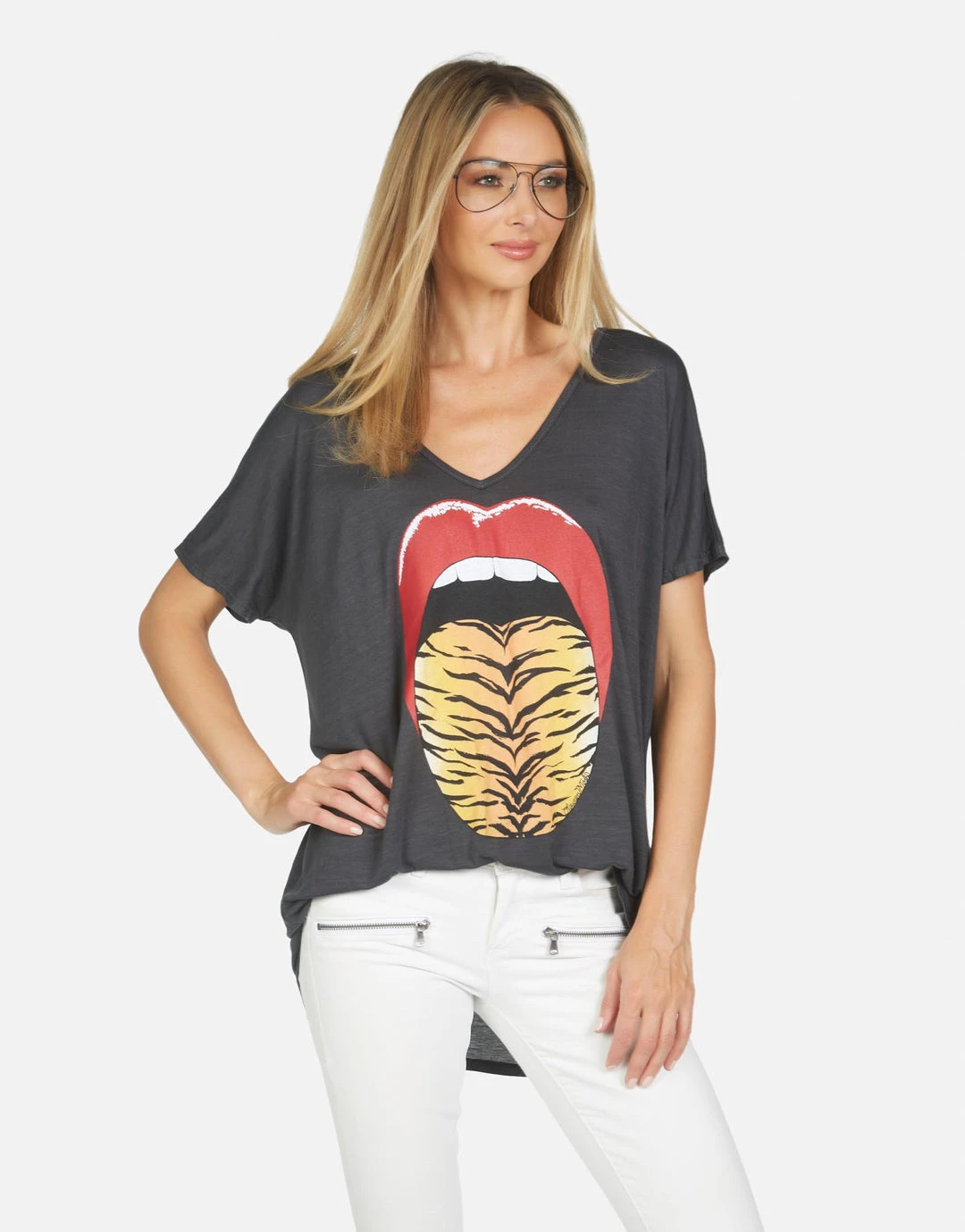 Tiger Tongue Printed on Ultra Soft Lightweight Tee in Onyx by Lauren Moshi.