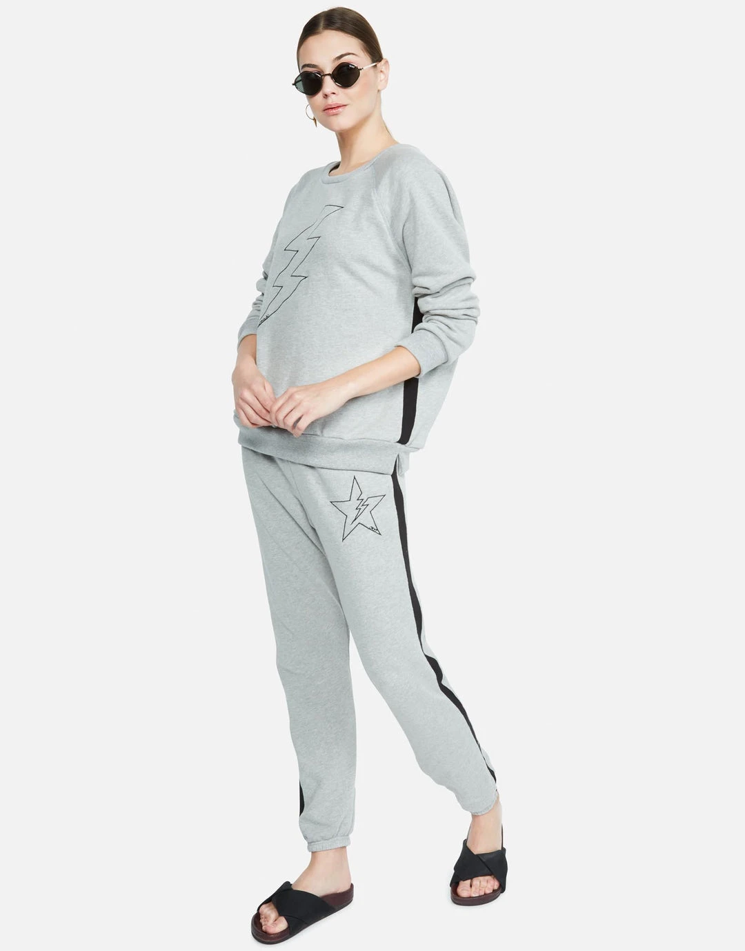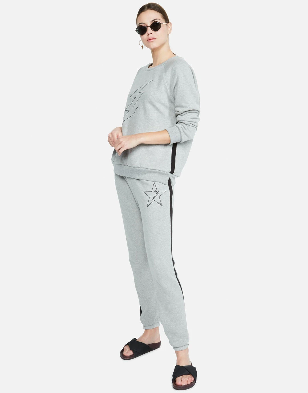 Lightning Star on Super Soft Lounge Pant in Heather Grey / Black by Lauren Moshi.