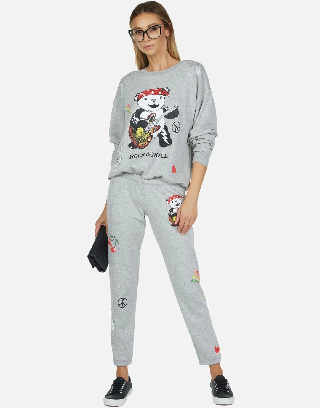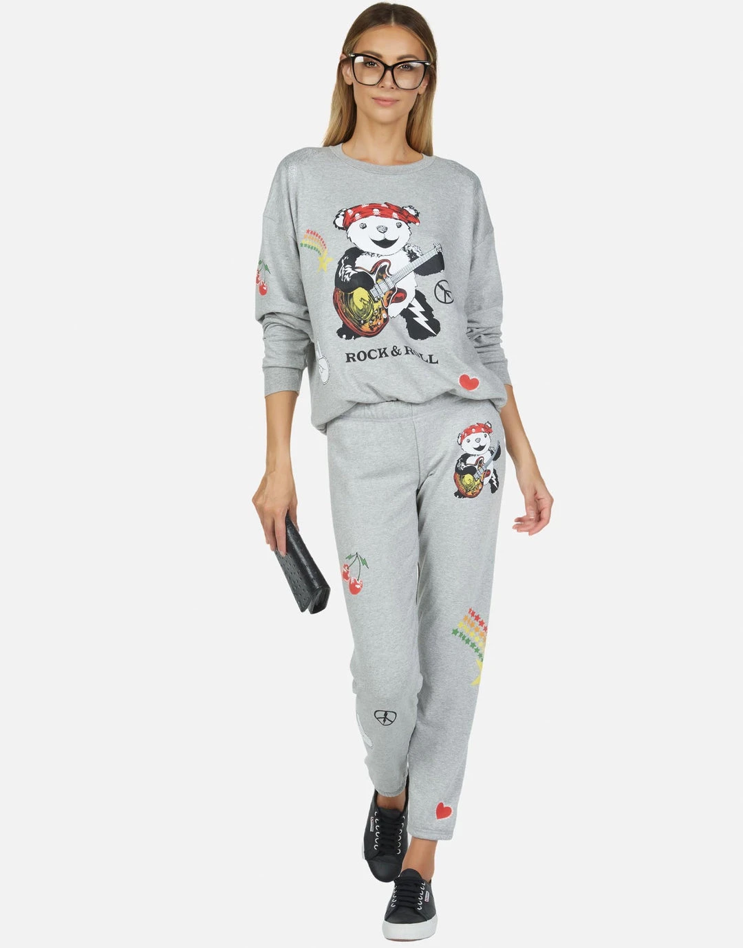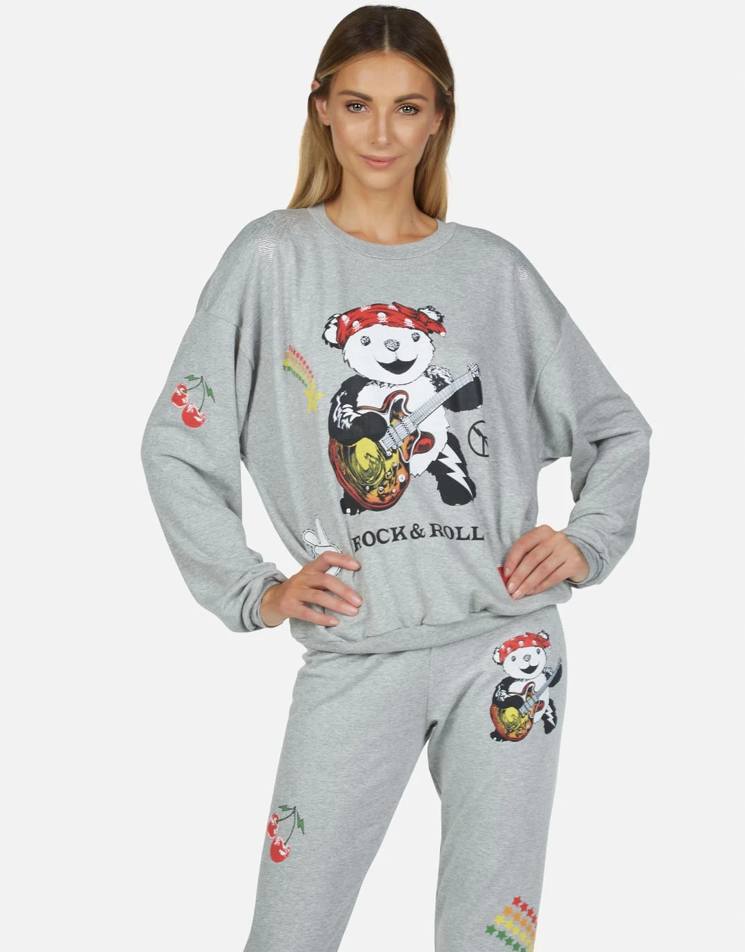 Rock Bear Printed on Ultra Soft Pullover in Heather Grey by Lauren Moshi.