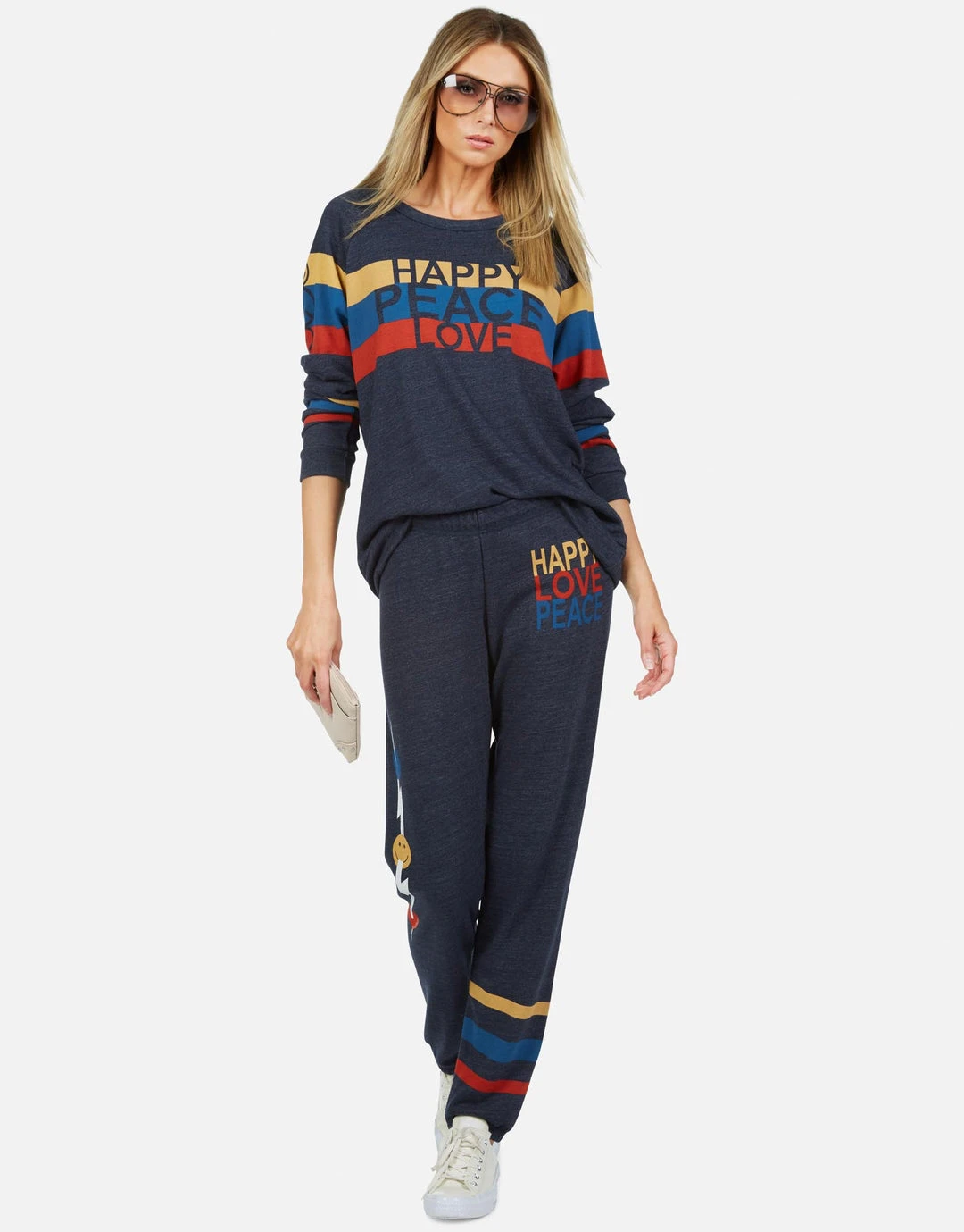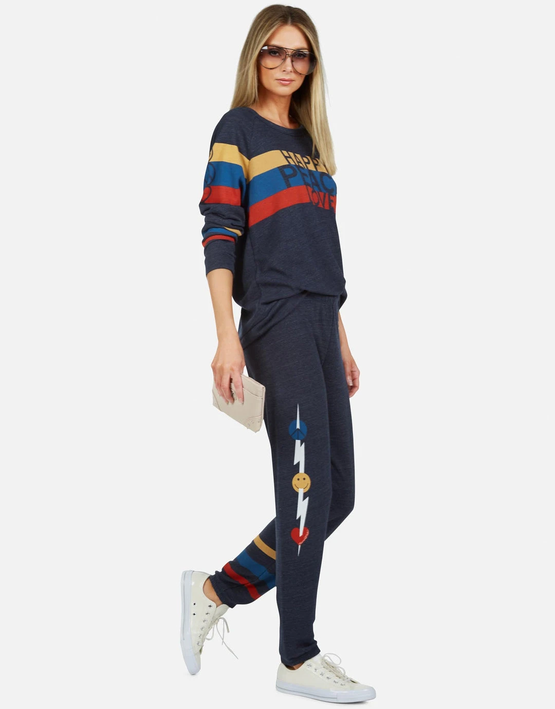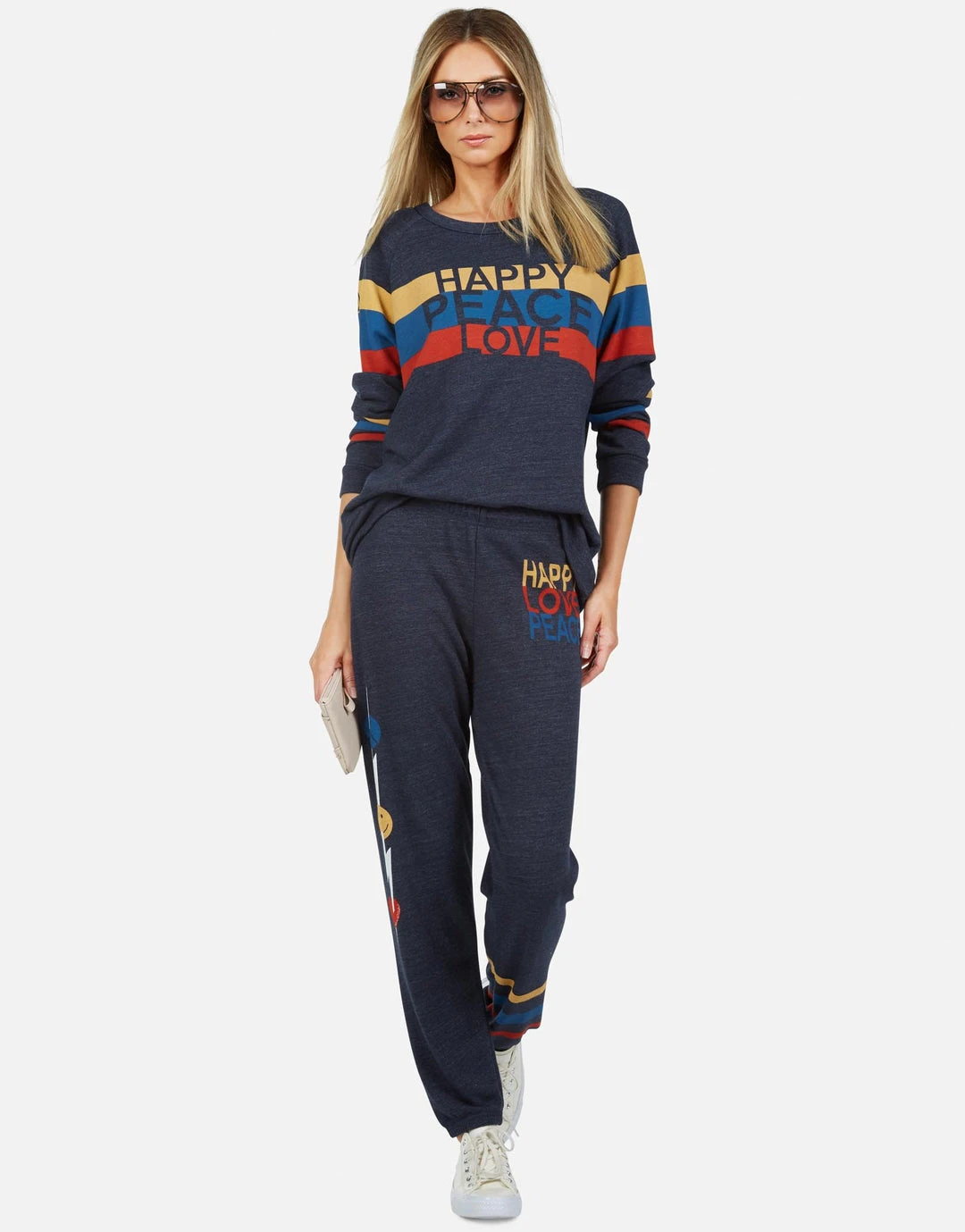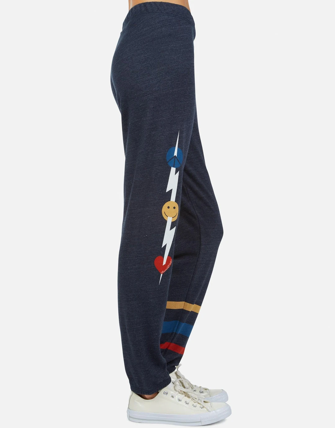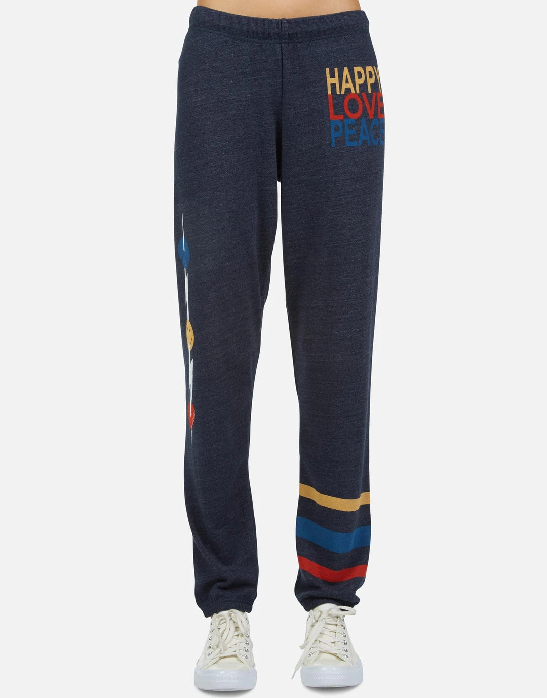 Happy Peace Love Printed on Ultra Soft Lightweight Sweatpant in Port Navy by Lauren Moshi.