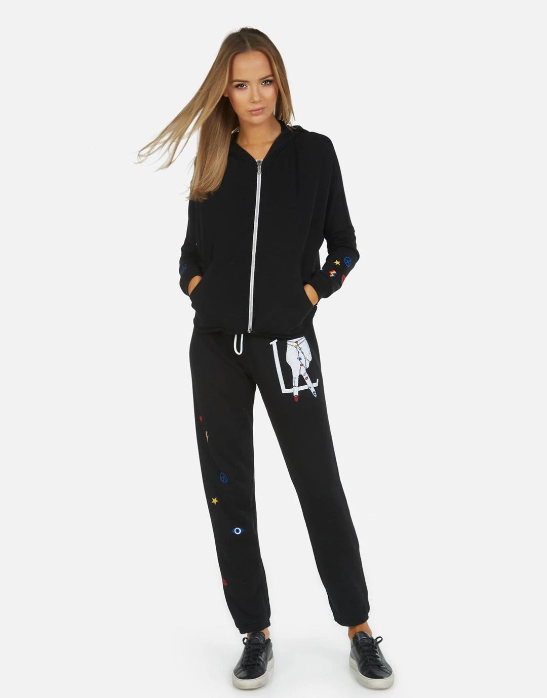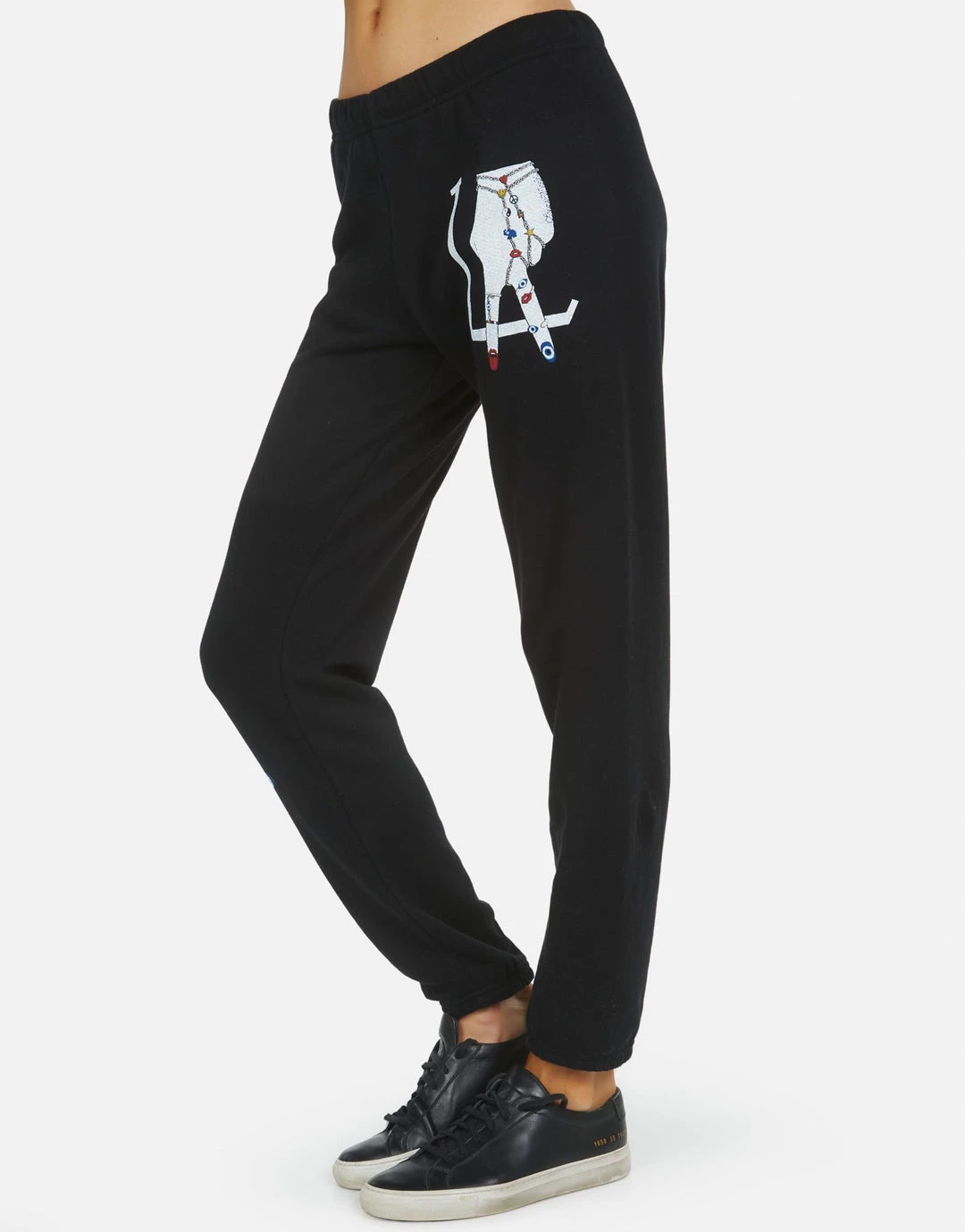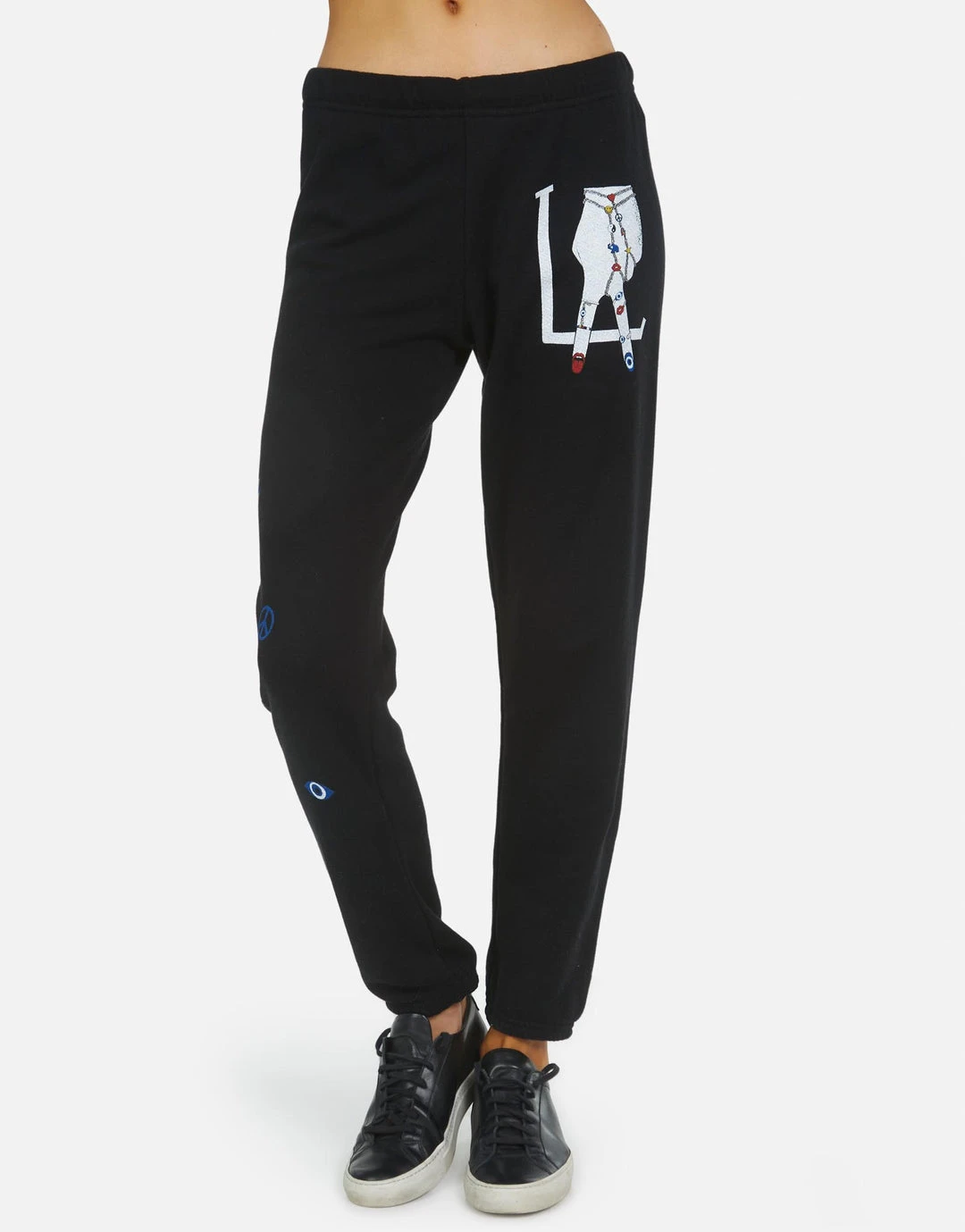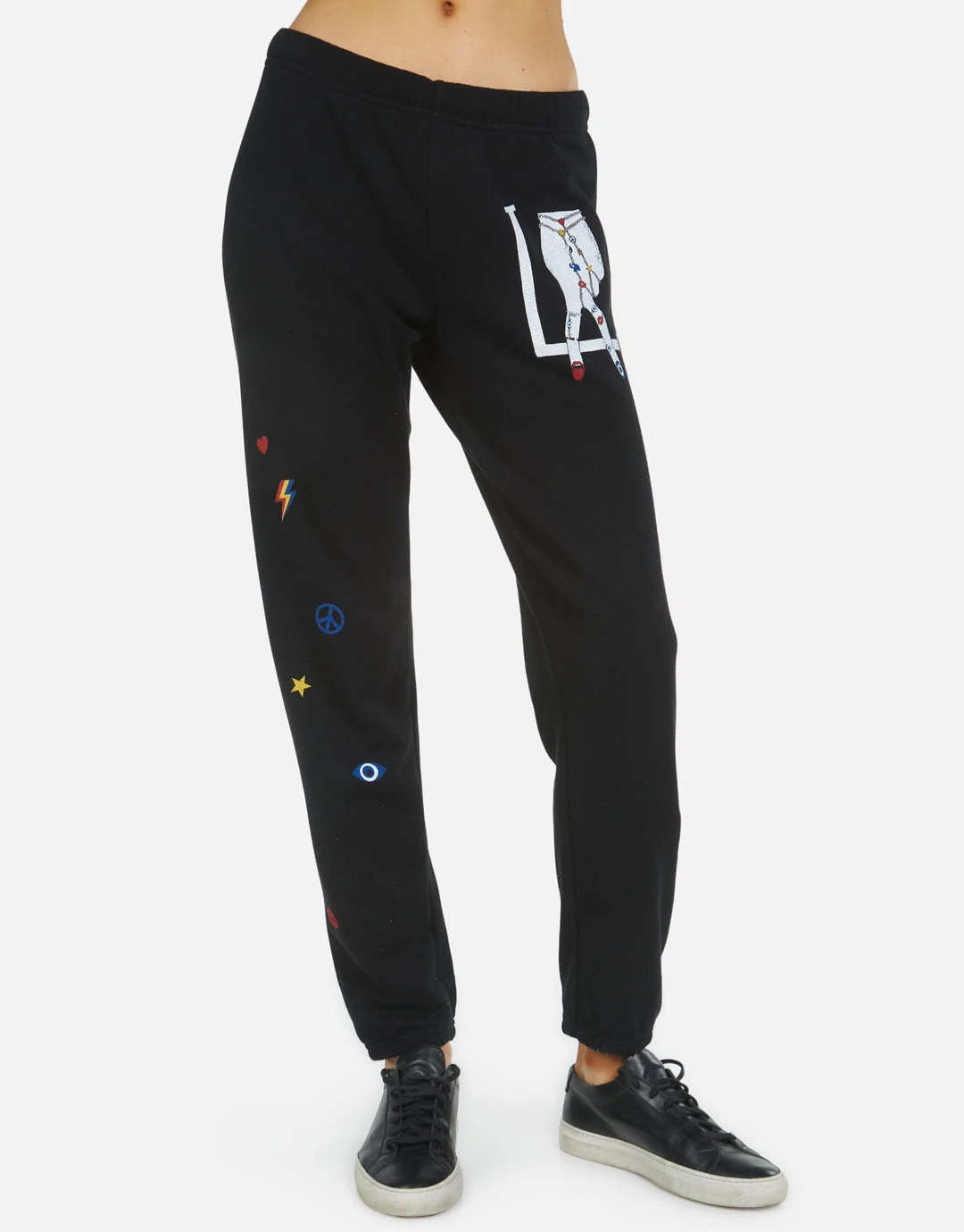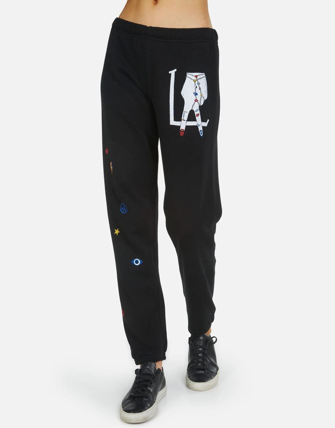 LA Hand Elements Printed on Ultra Soft Lightweight Sweatpant in Black by Lauren Moshi.