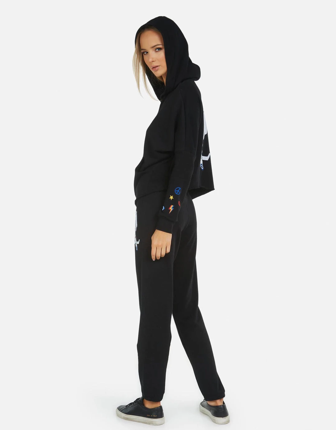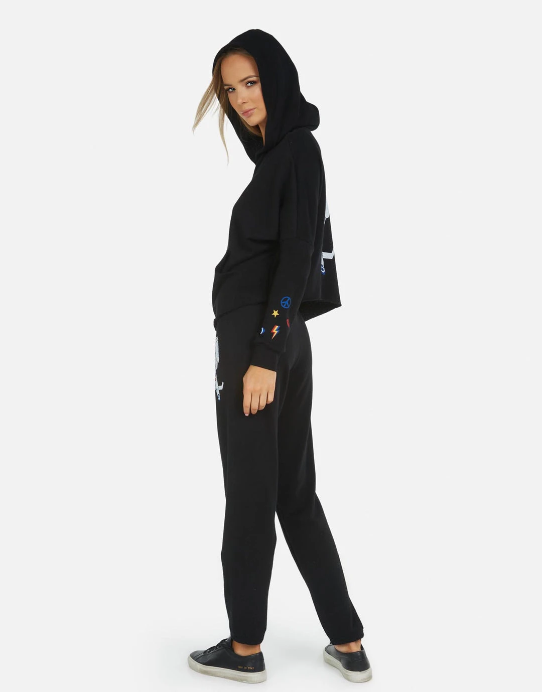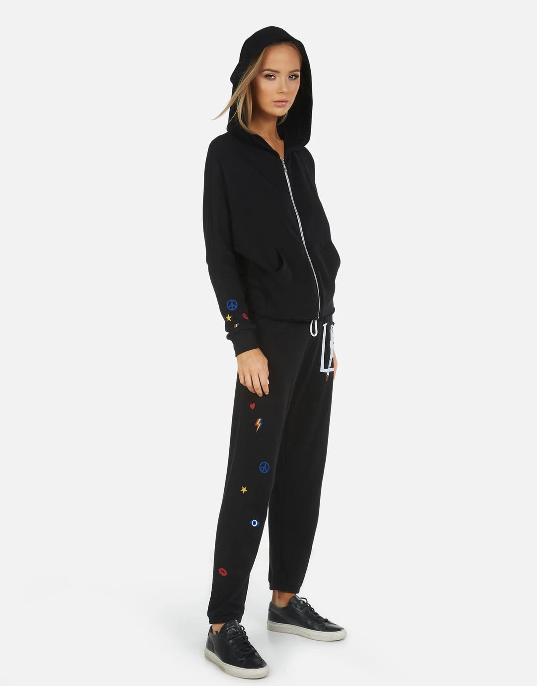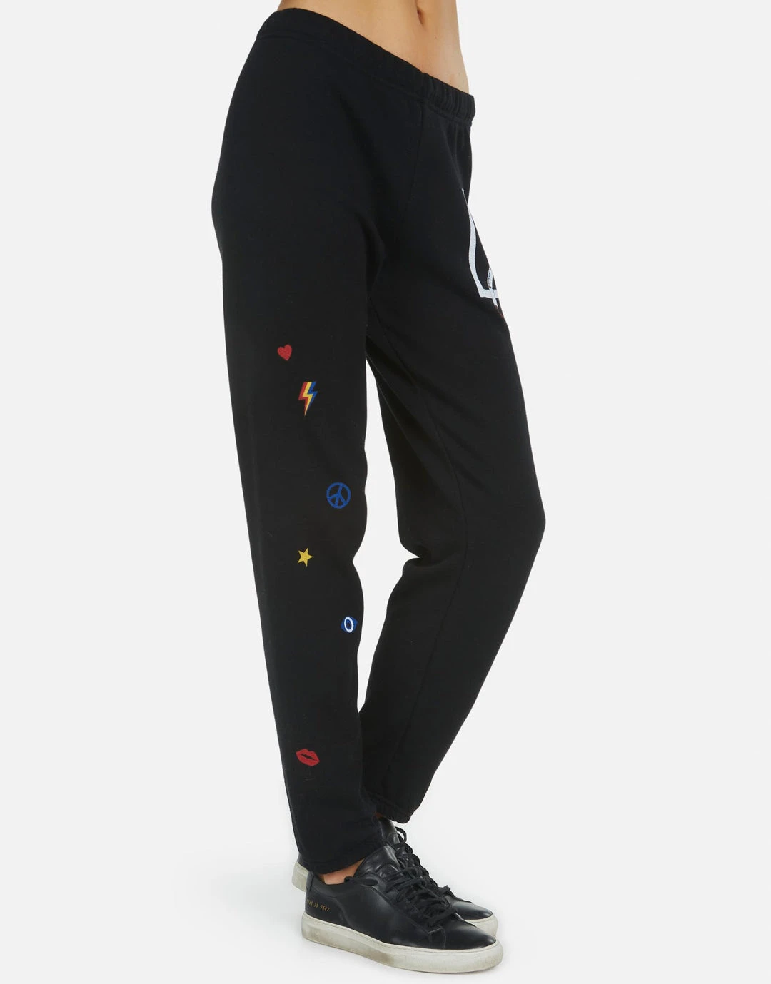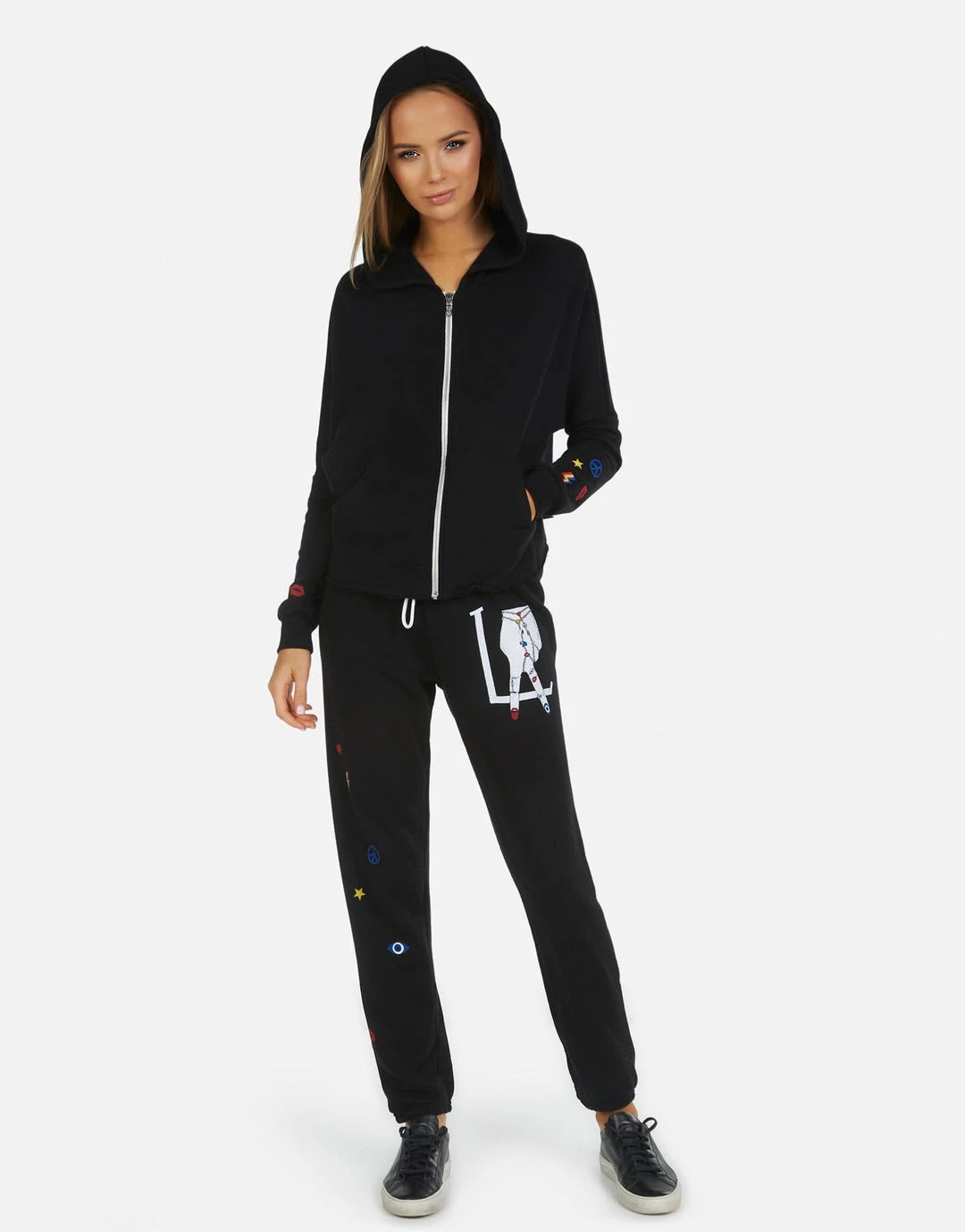 LA Hand Elements Printed on Ultra Soft Lightweight Sweatpant in Black by Lauren Moshi.