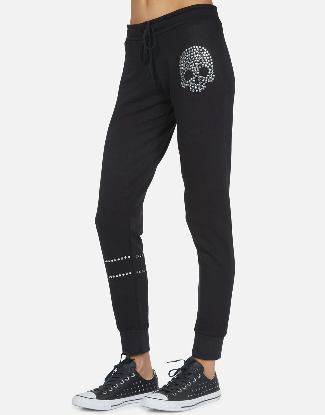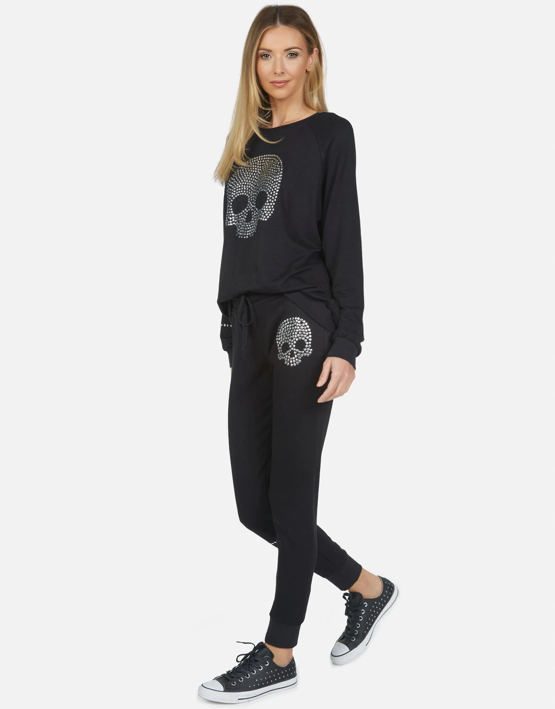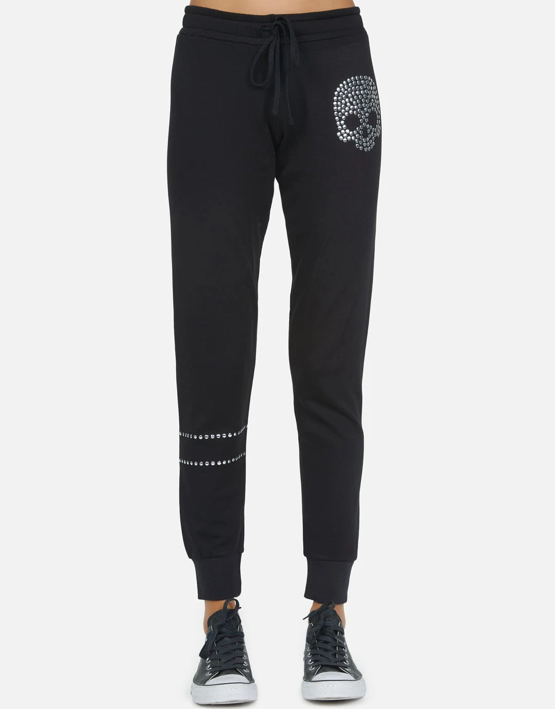 Nailhead Skull on Ultra Soft Lightweight Sweatpant in Black by Lauren Moshi.