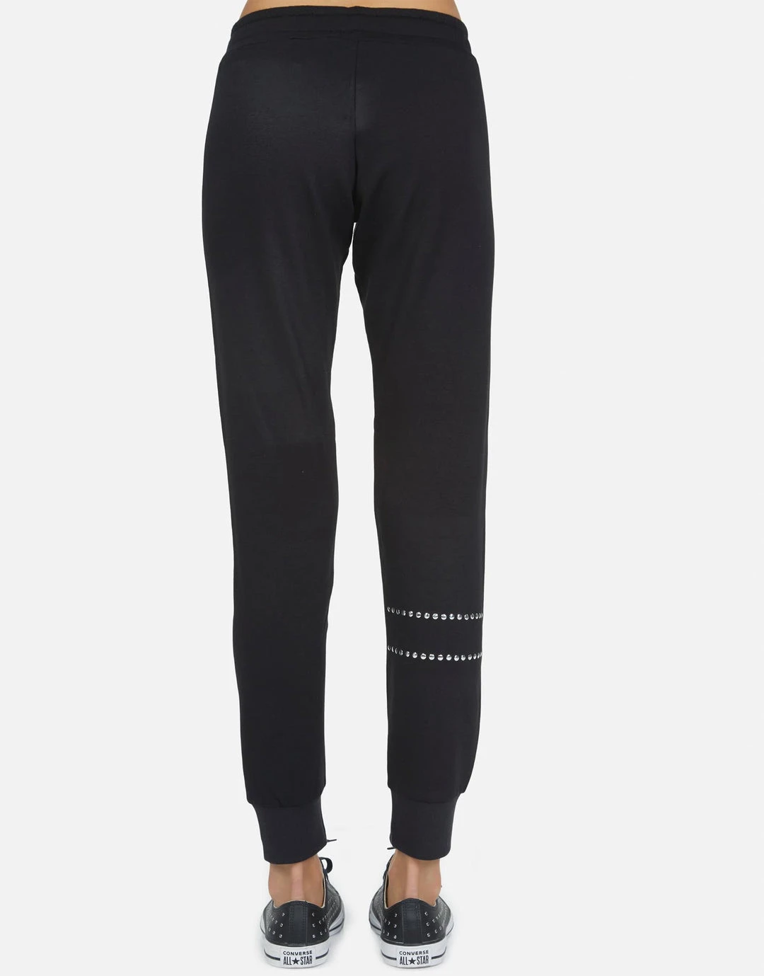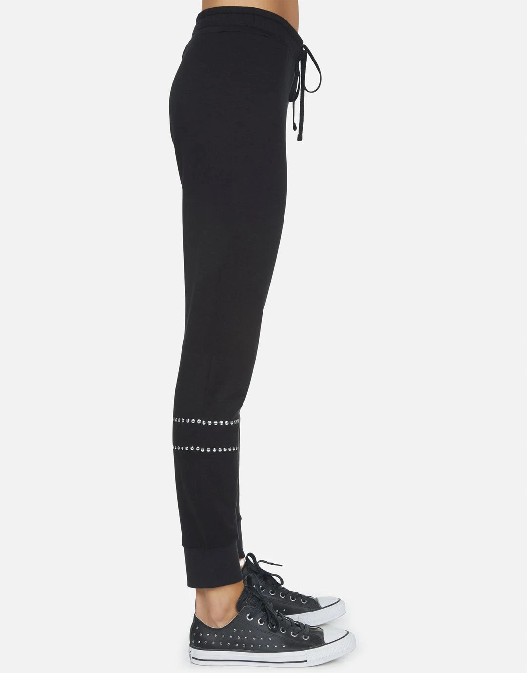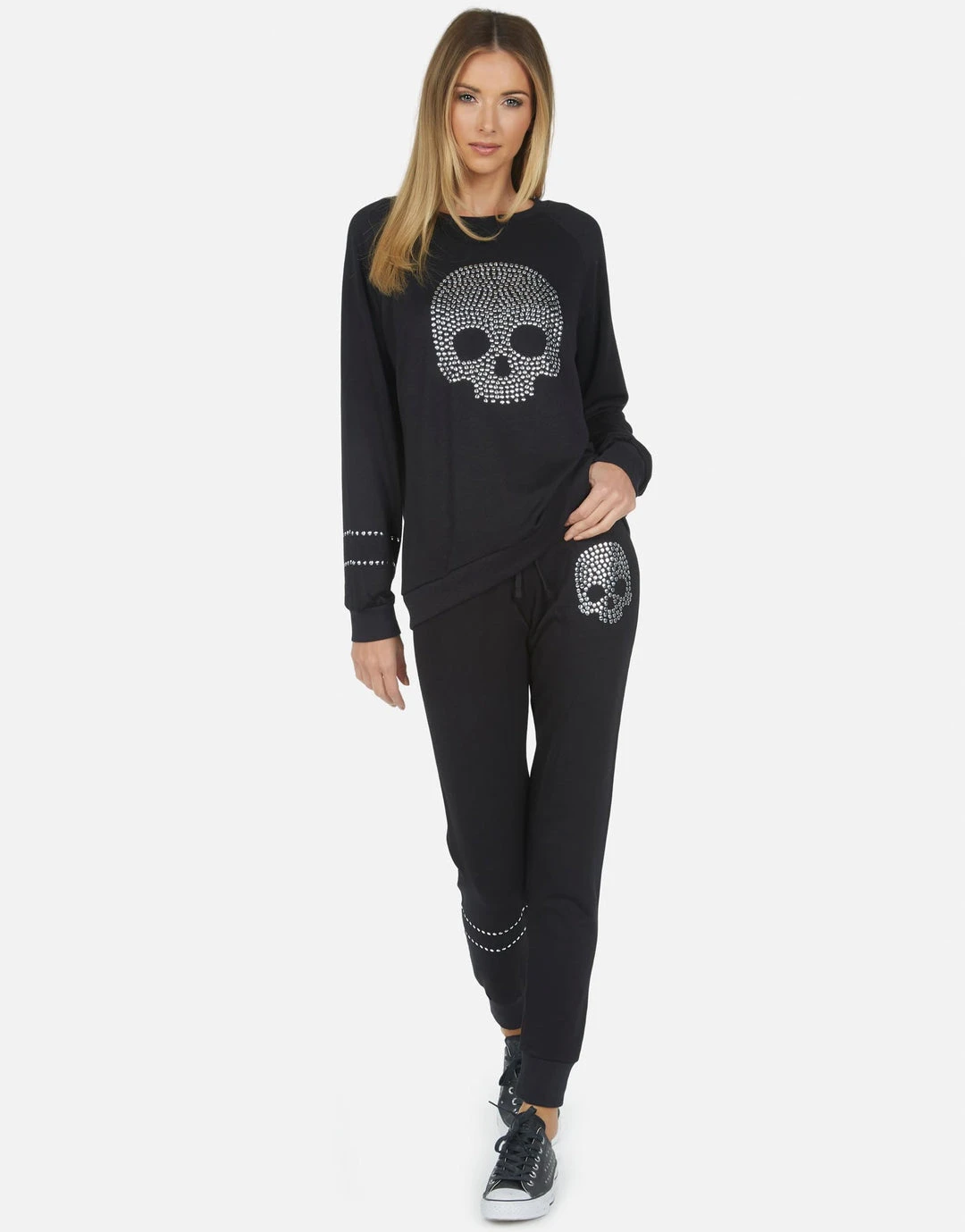 Nailhead Skull on Ultra Soft Lightweight Sweatpant in Black by Lauren Moshi.
