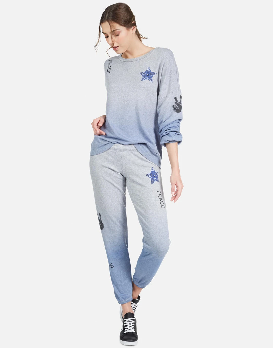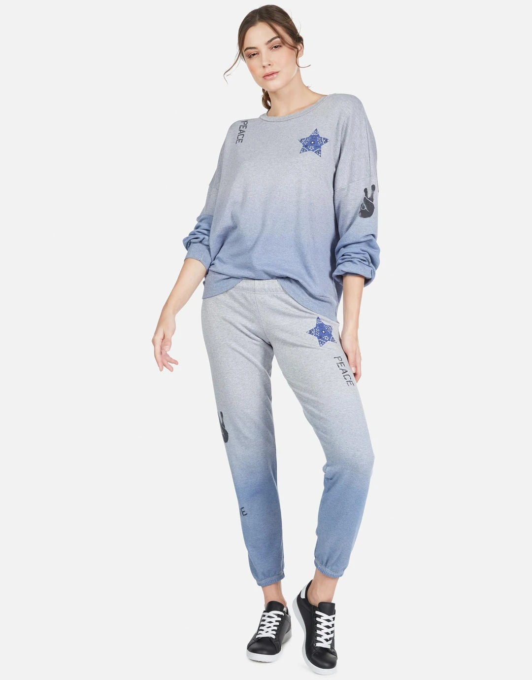 Bandana Star Printed on Ultra Soft Lightweight Sweatpant in Blue Ombre by Lauren Moshi.