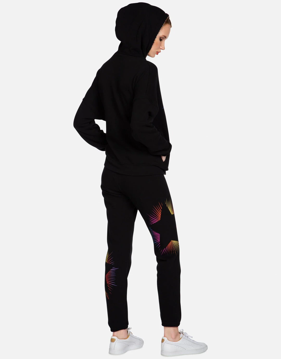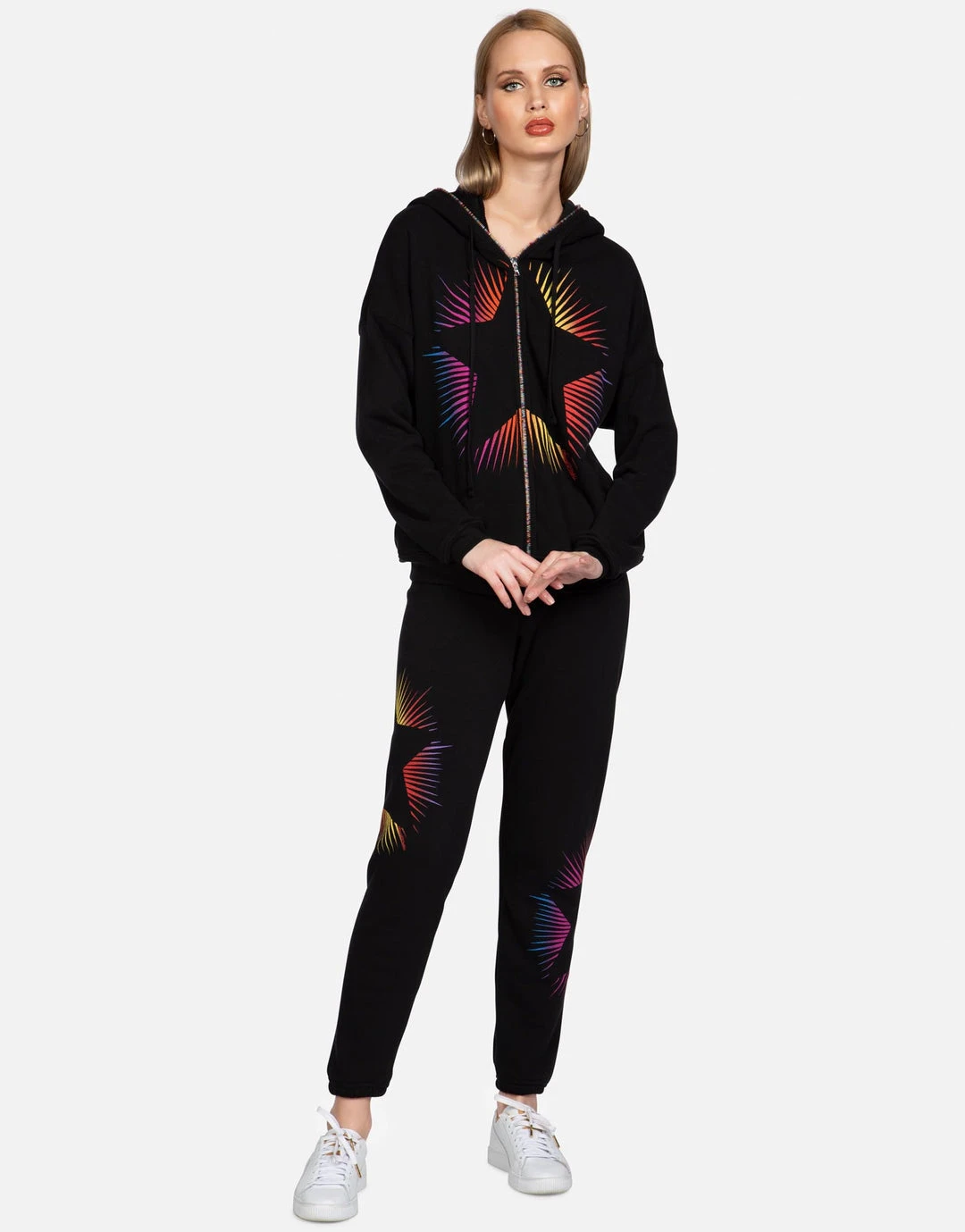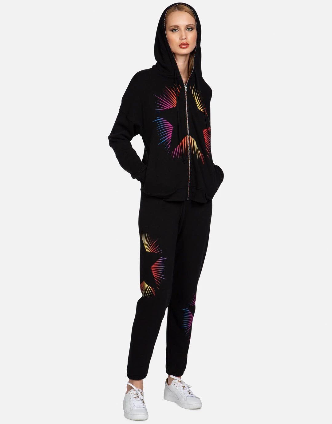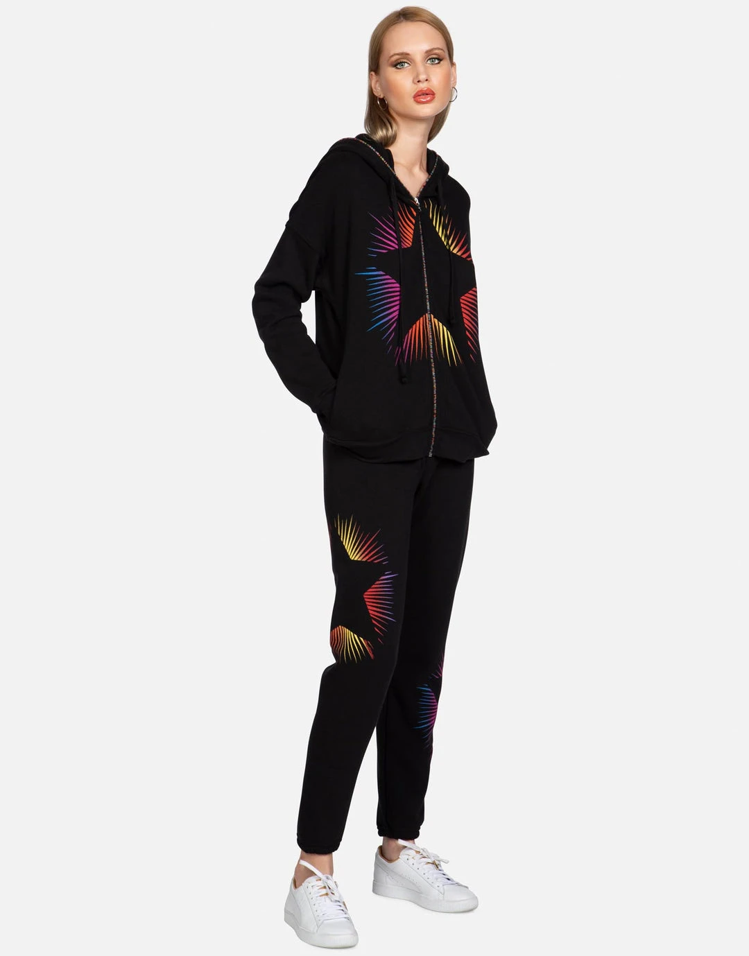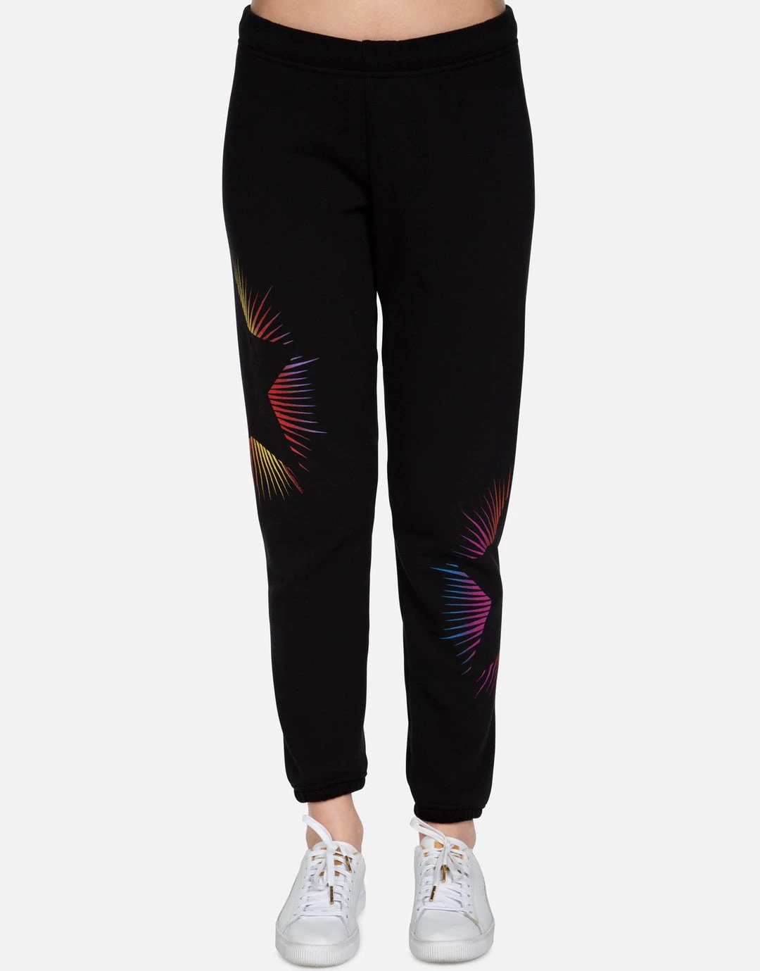 Bright Starburst Printed on Ultra Soft Lightweight Sweatpant in Black by Lauren Moshi.