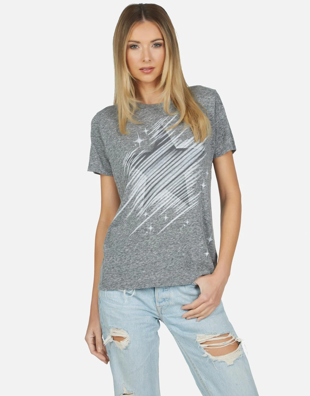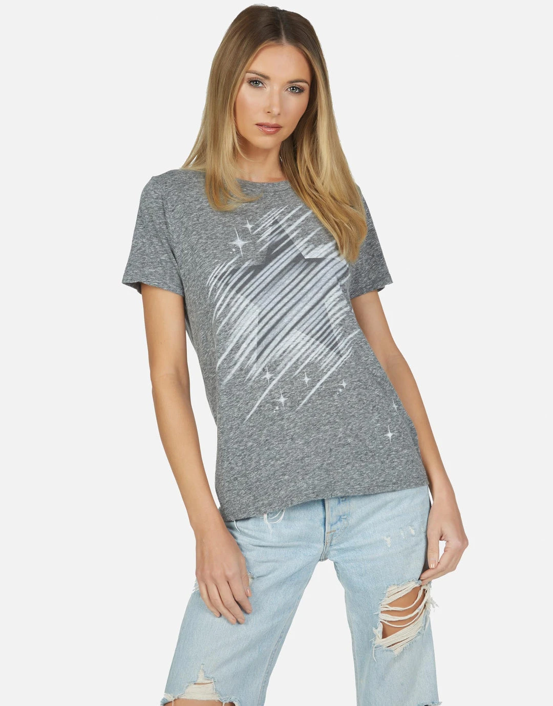 Neon Sparkle Star Printed on Ultra Soft Lightweight Tee in Black or White by Lauren Moshi.
