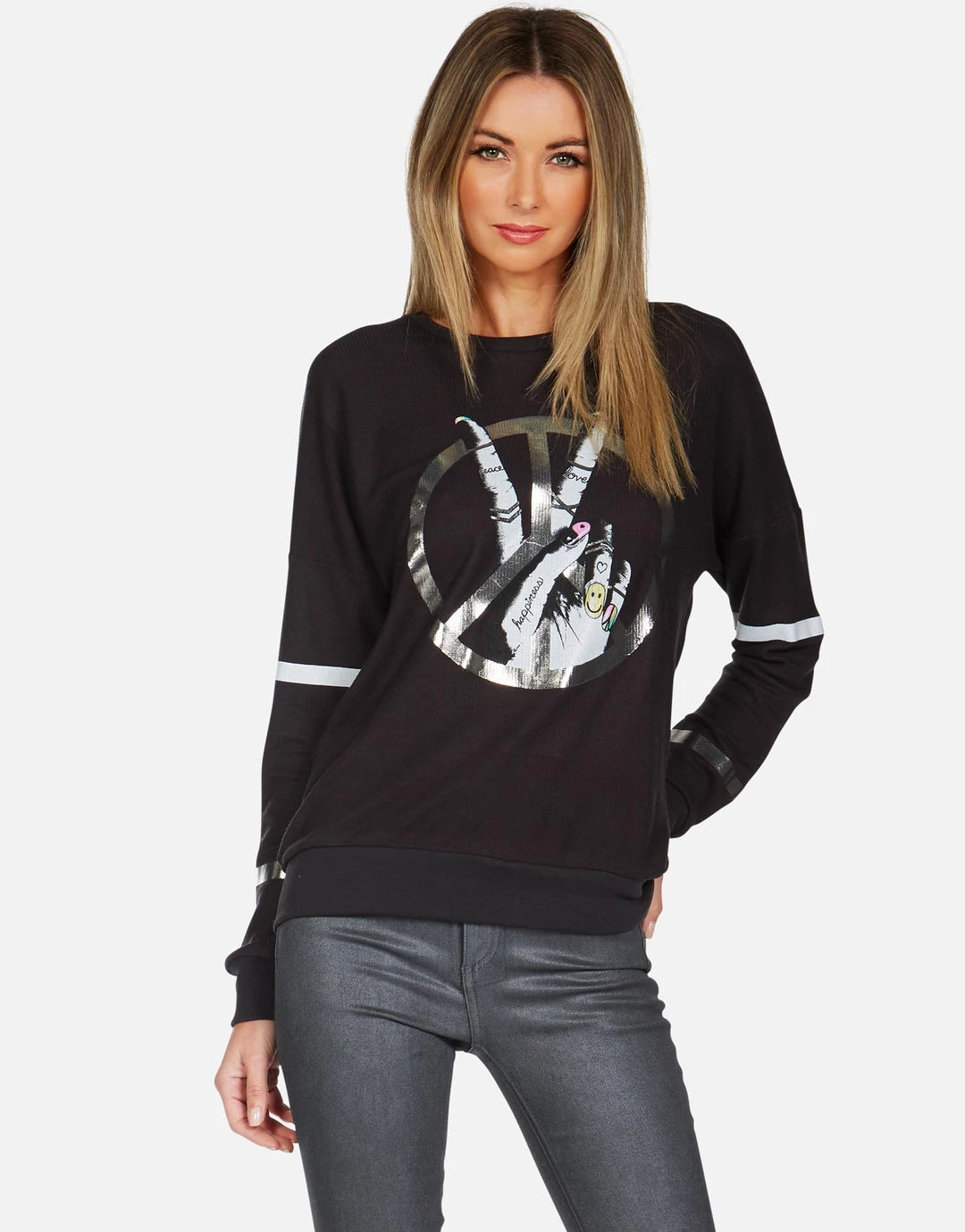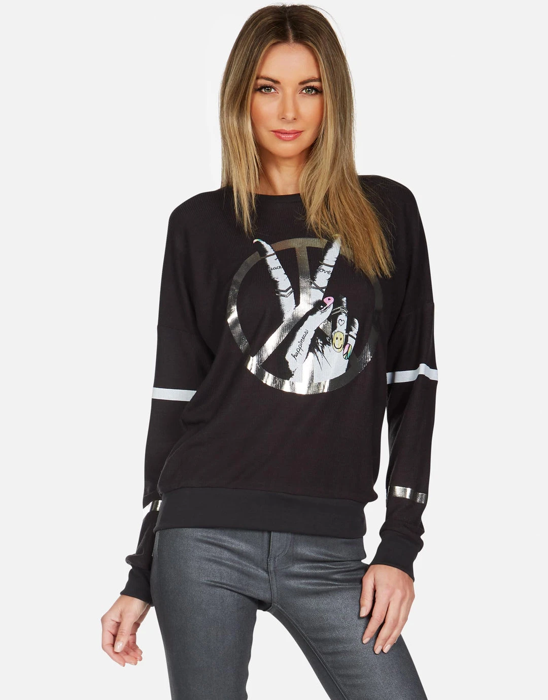 Peace Sign Hand Printed on Ultra Soft Lightweight Thermal in Onyx by Lauren Moshi.