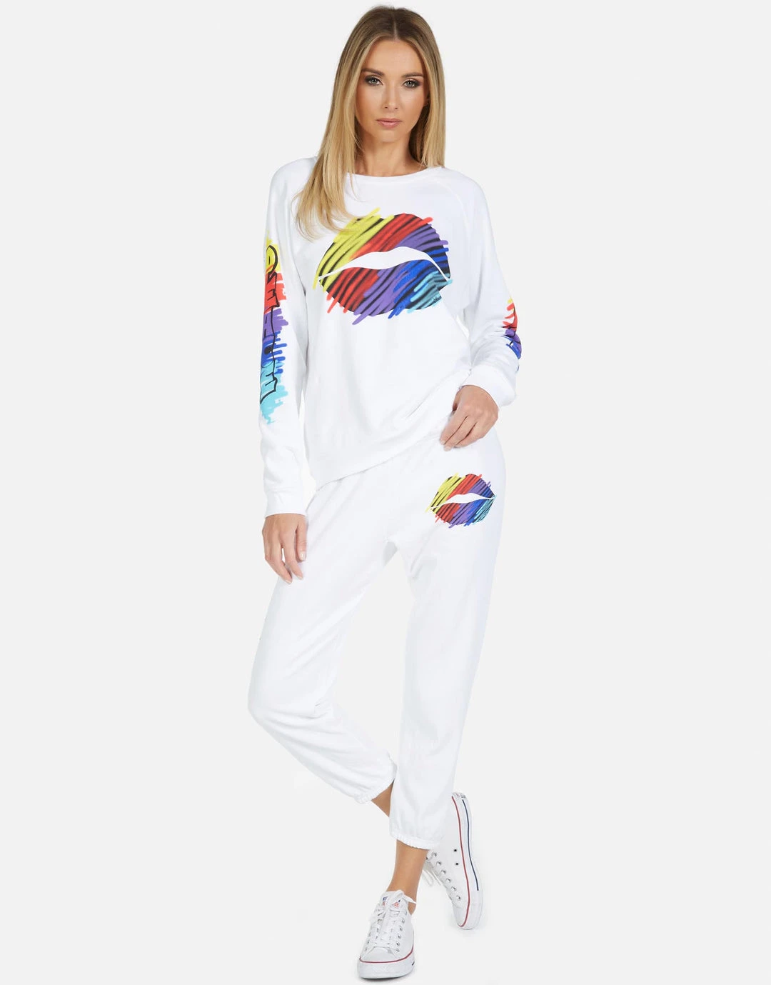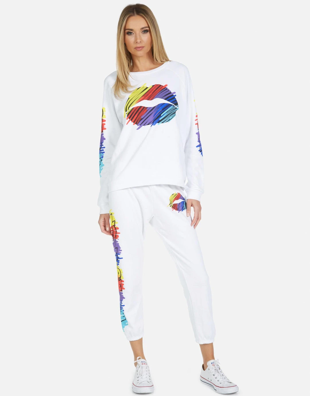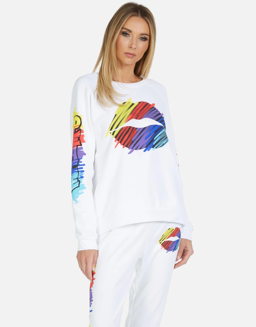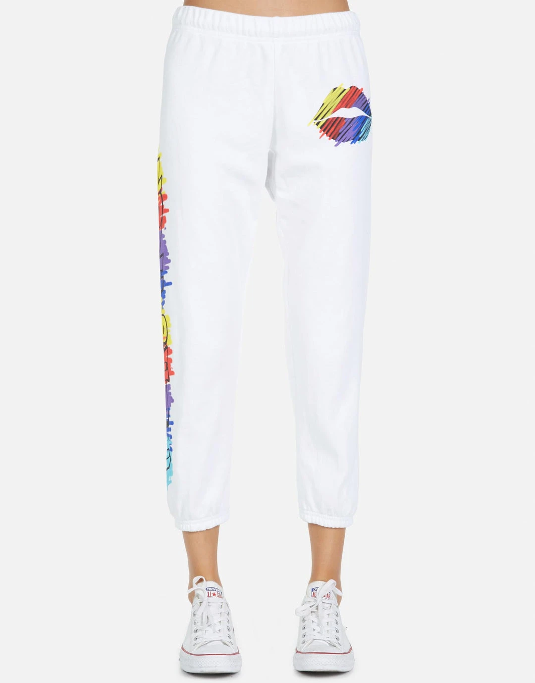 Scribble Lip on Ultra Soft Classic Sweatpant in Black by Lauren Moshi.