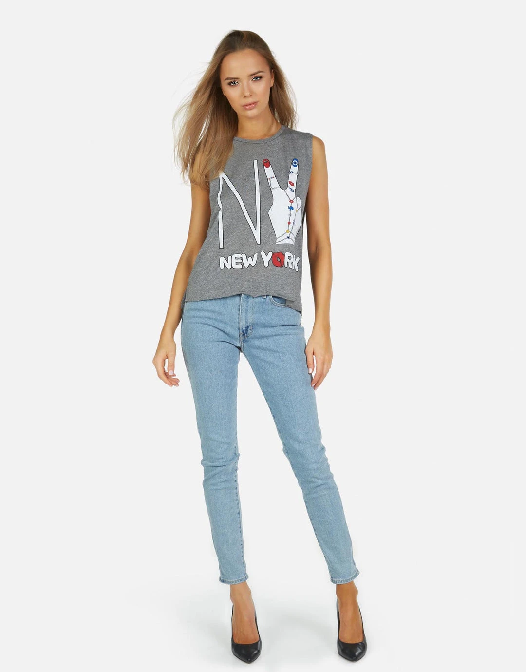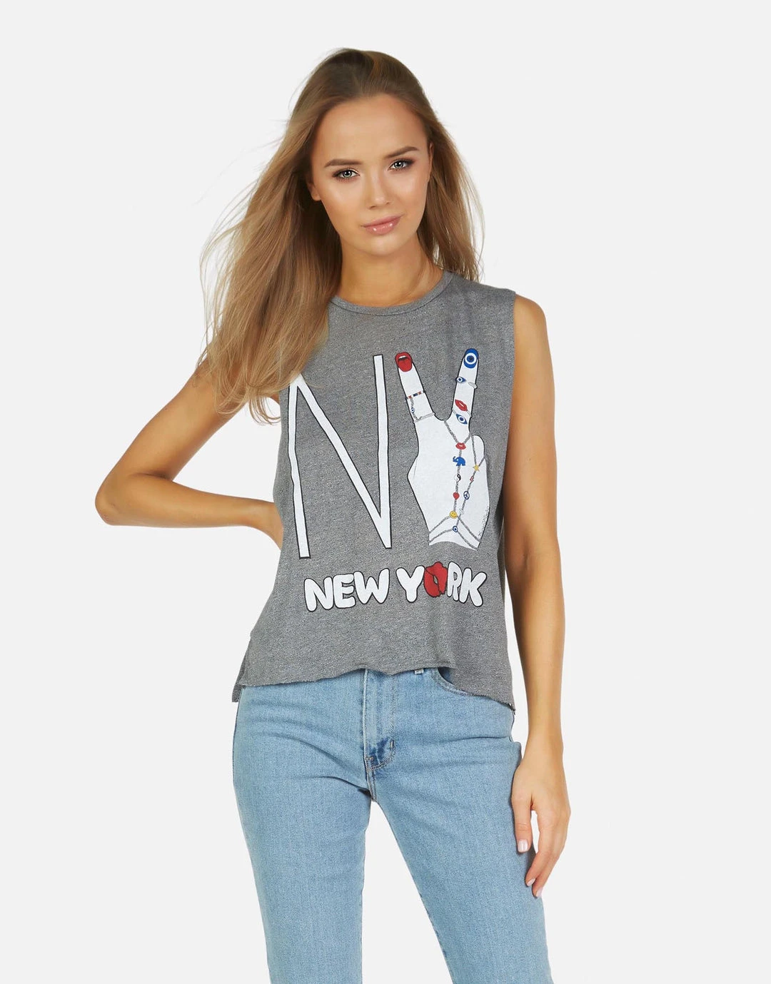 NY Hand Elements Printed on Ultra Soft Lightweight Tank in Heather Grey by Lauren Moshi.