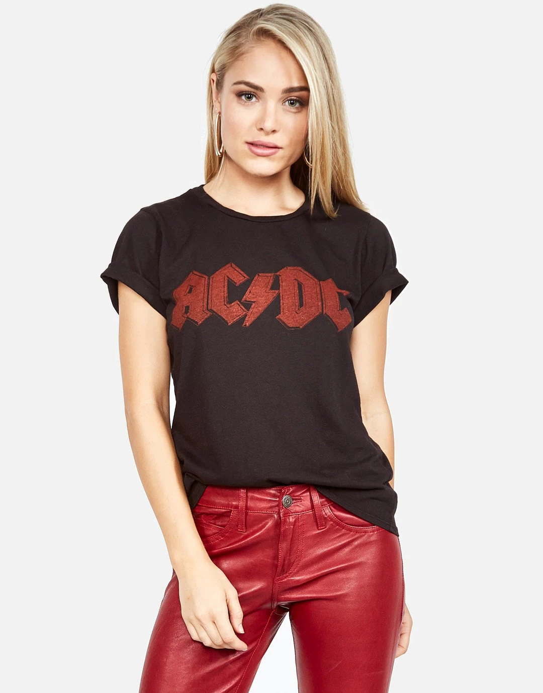 AC/DC Money Talks Printed on Ultra Soft Vintage Tee in Onyx by Lauren Moshi.