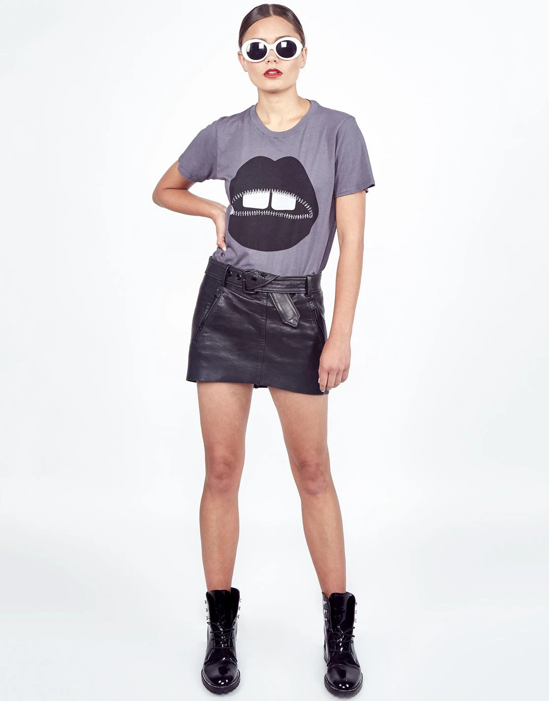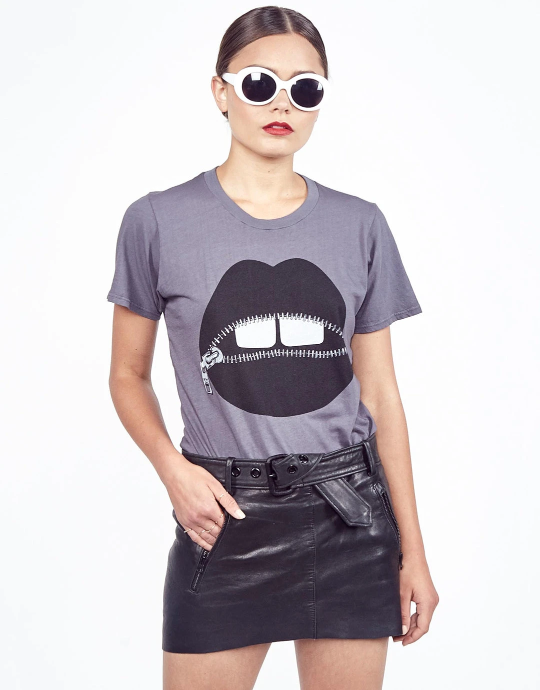 Zipper Mouth Printed on Super Soft Lightweight Tee in Lava Grey by Lauren Moshi.