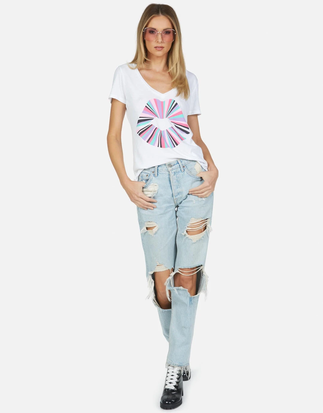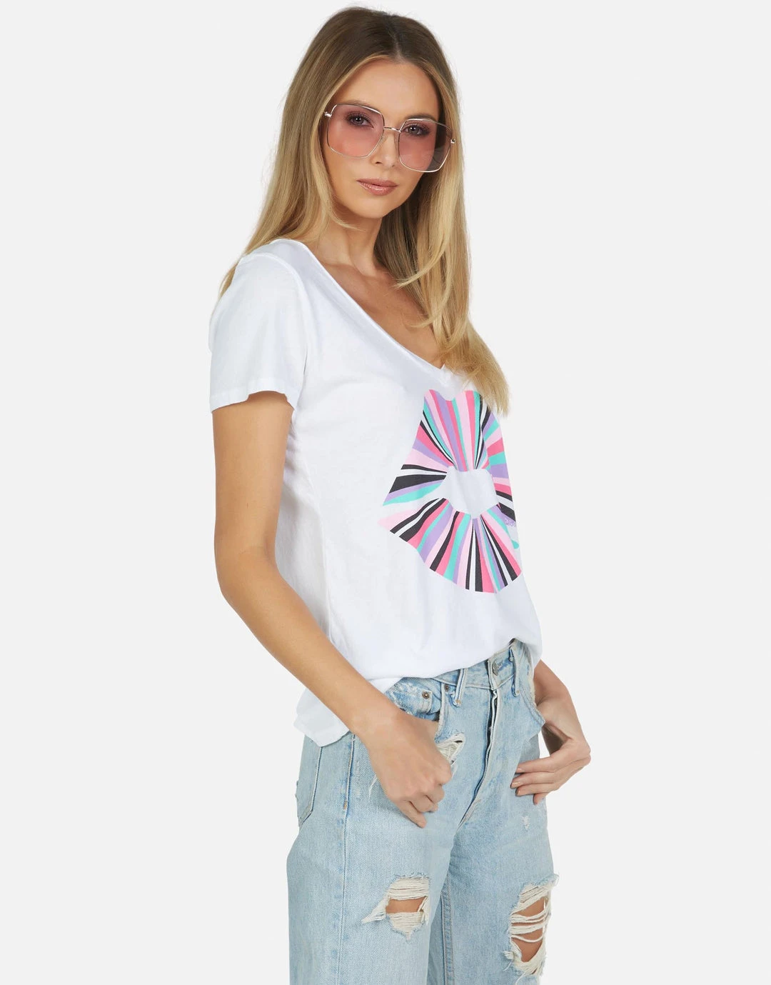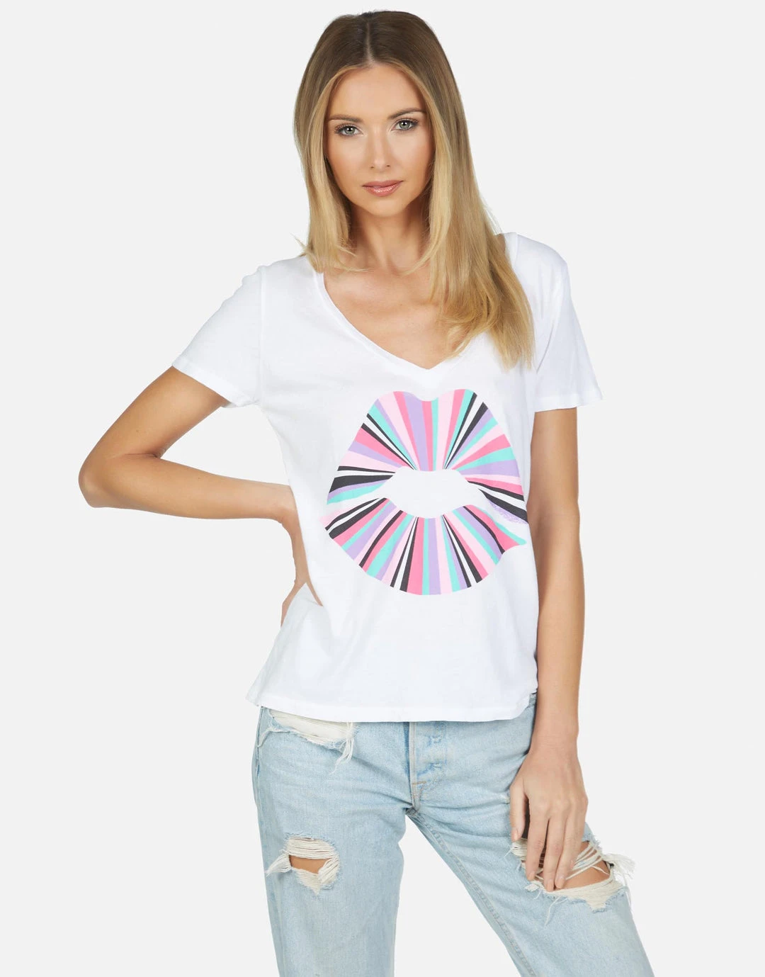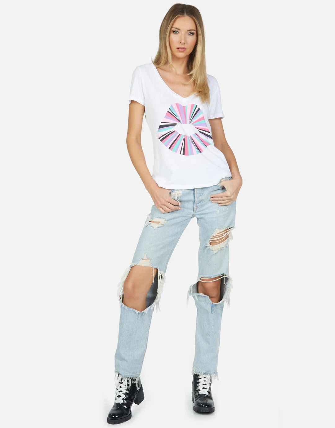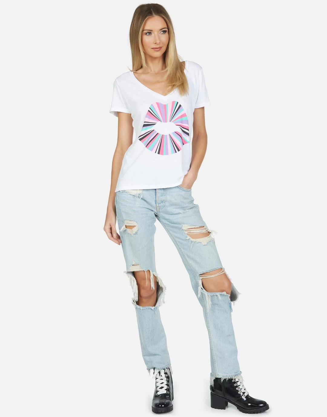 Rainbow Ray Lip Printed on Ultra Soft Lightweight Tee in White by Lauren Moshi.