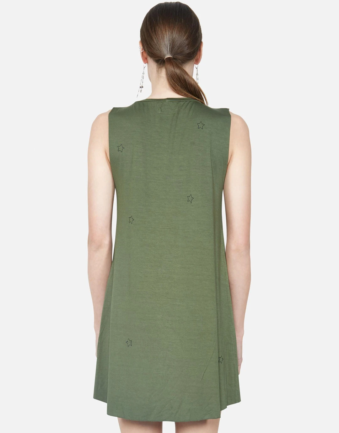 Allover Mini Dripping Stars Printed on Ultra Soft Lightweight Mini Dress in Military by Lauren Moshi.