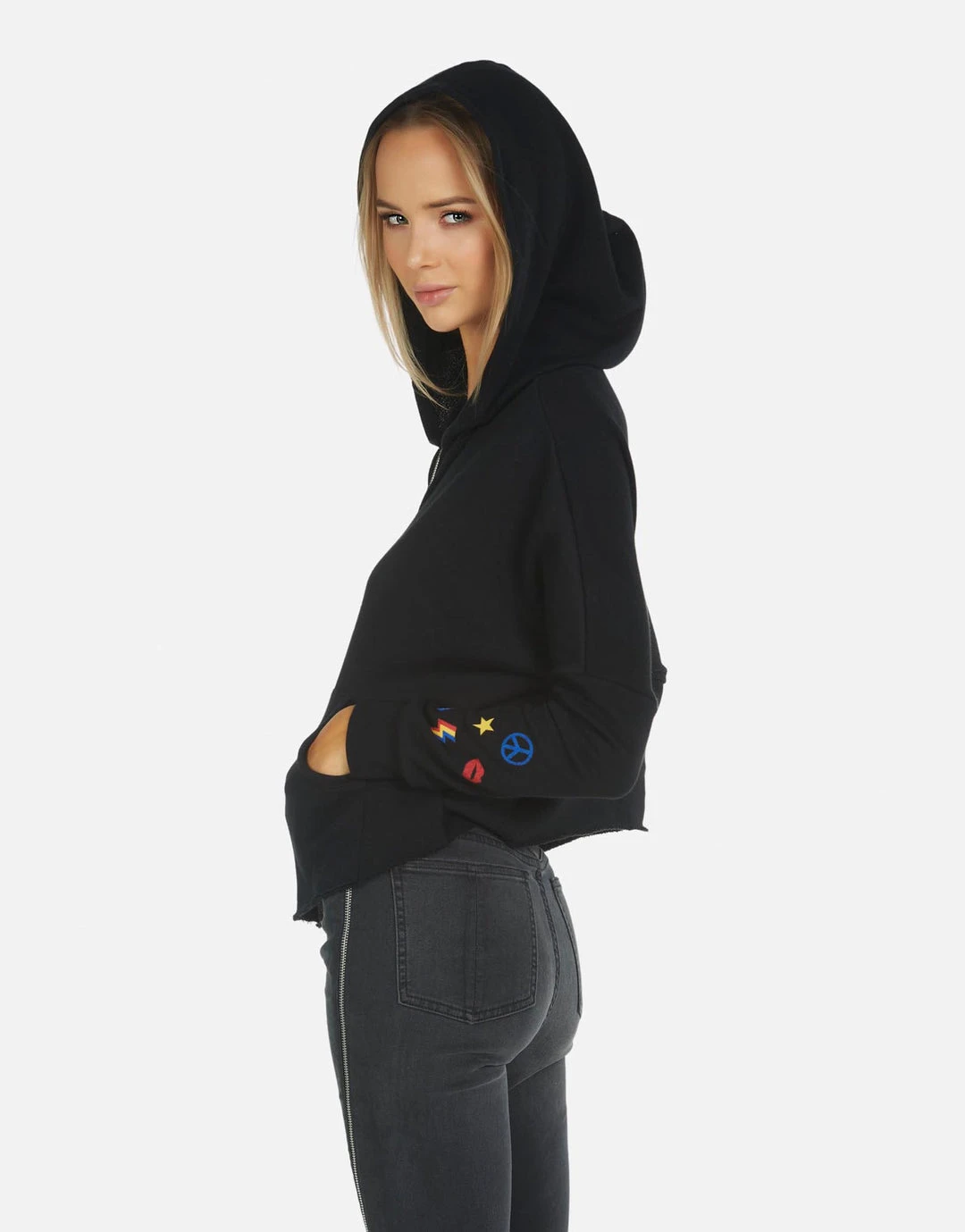 LA Hand Elements Printed on Ultra Soft Lightweight Hoodie in Black by Lauren Moshi.