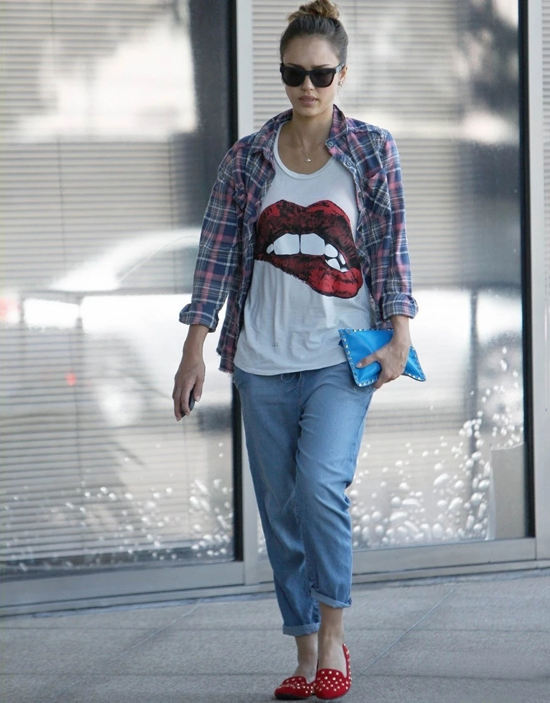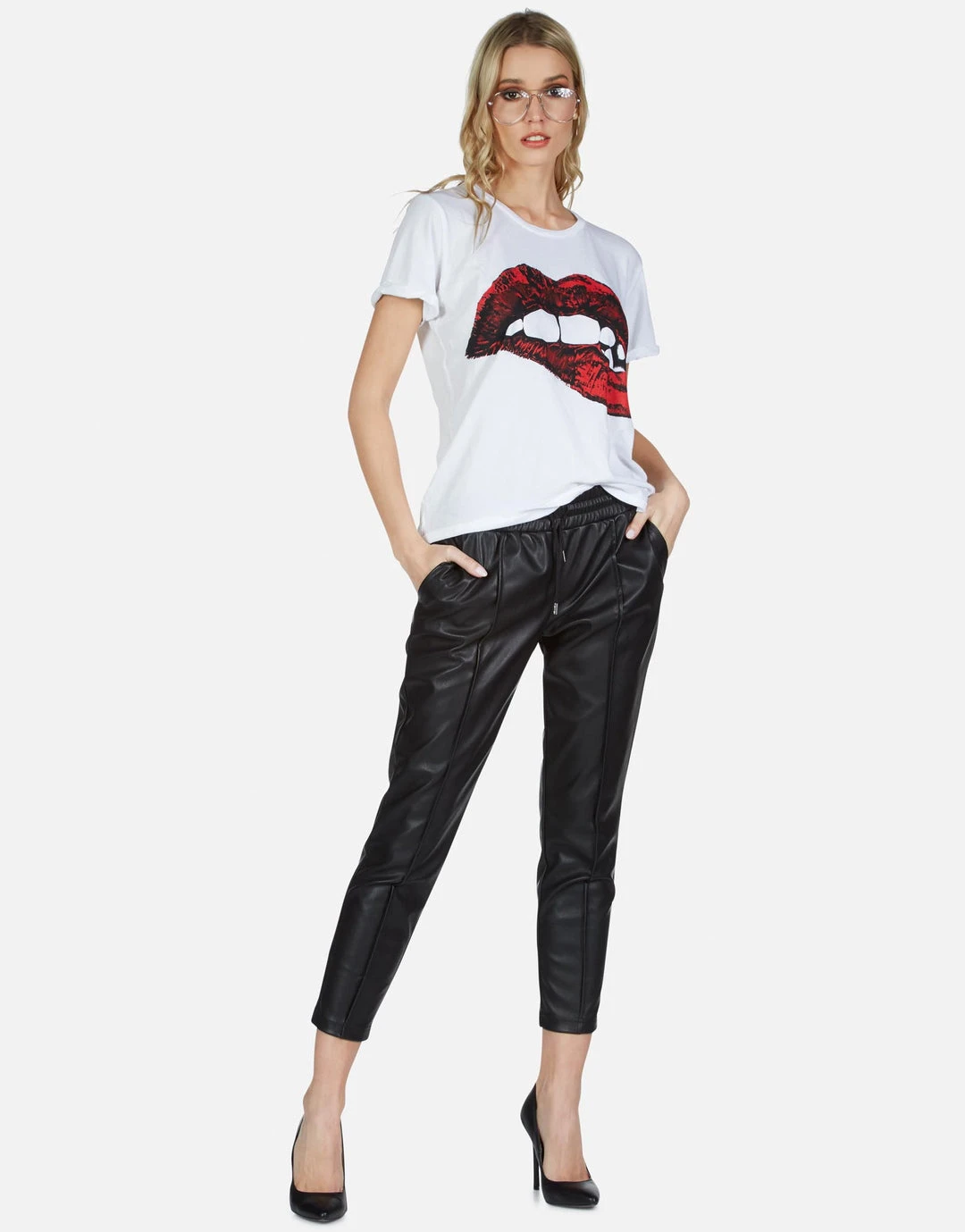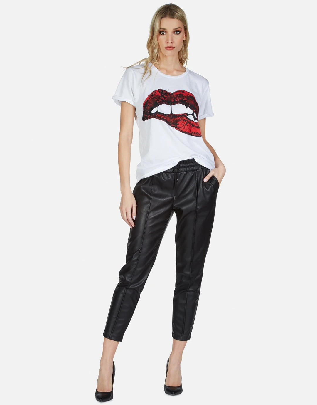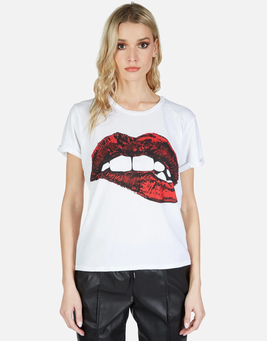 Biting Lip Printed on Ultra Soft Lightweight Tee in White by Lauren Moshi.
