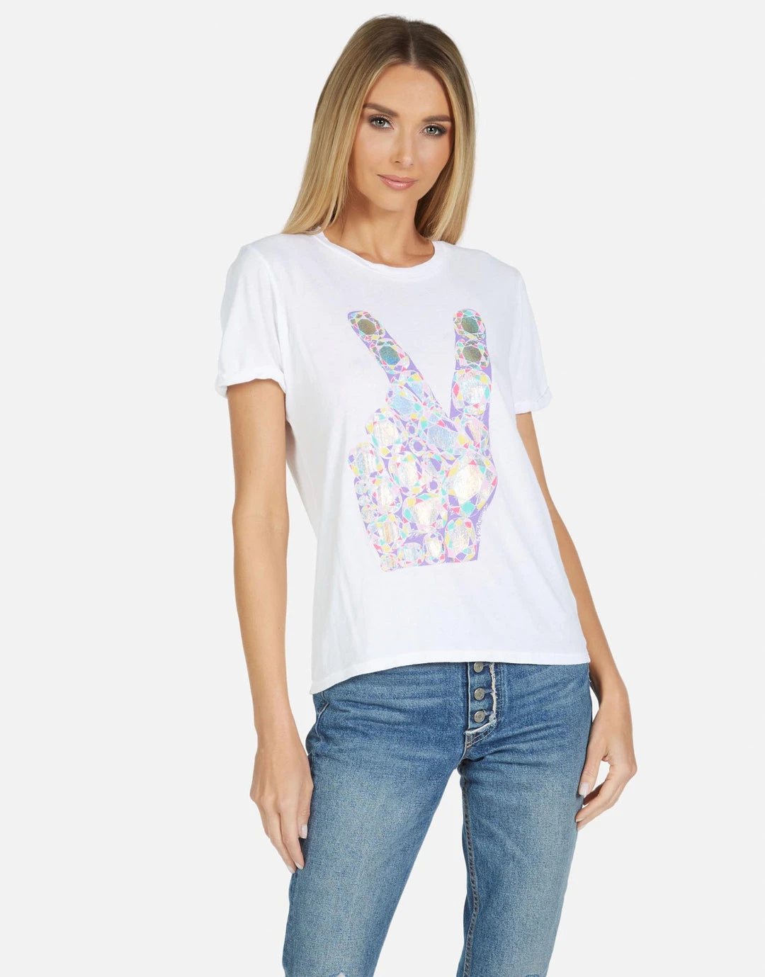 Meatallic Diamond Peace Printed on Ultra Soft Lightweight Tee in White by Lauren Moshi.