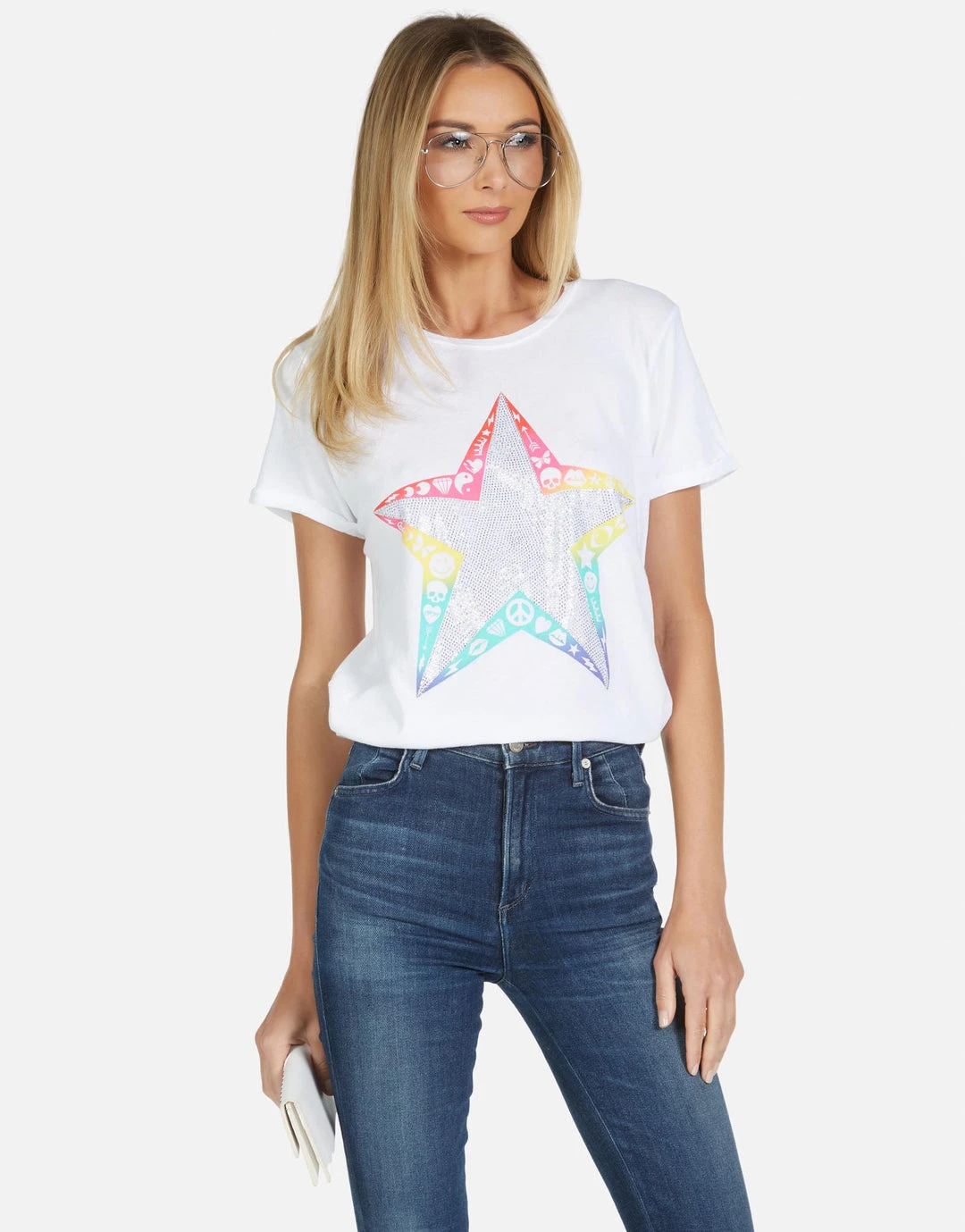 Color Elements Star on Ultra Soft Lightweight Tee in White by Lauren Moshi.