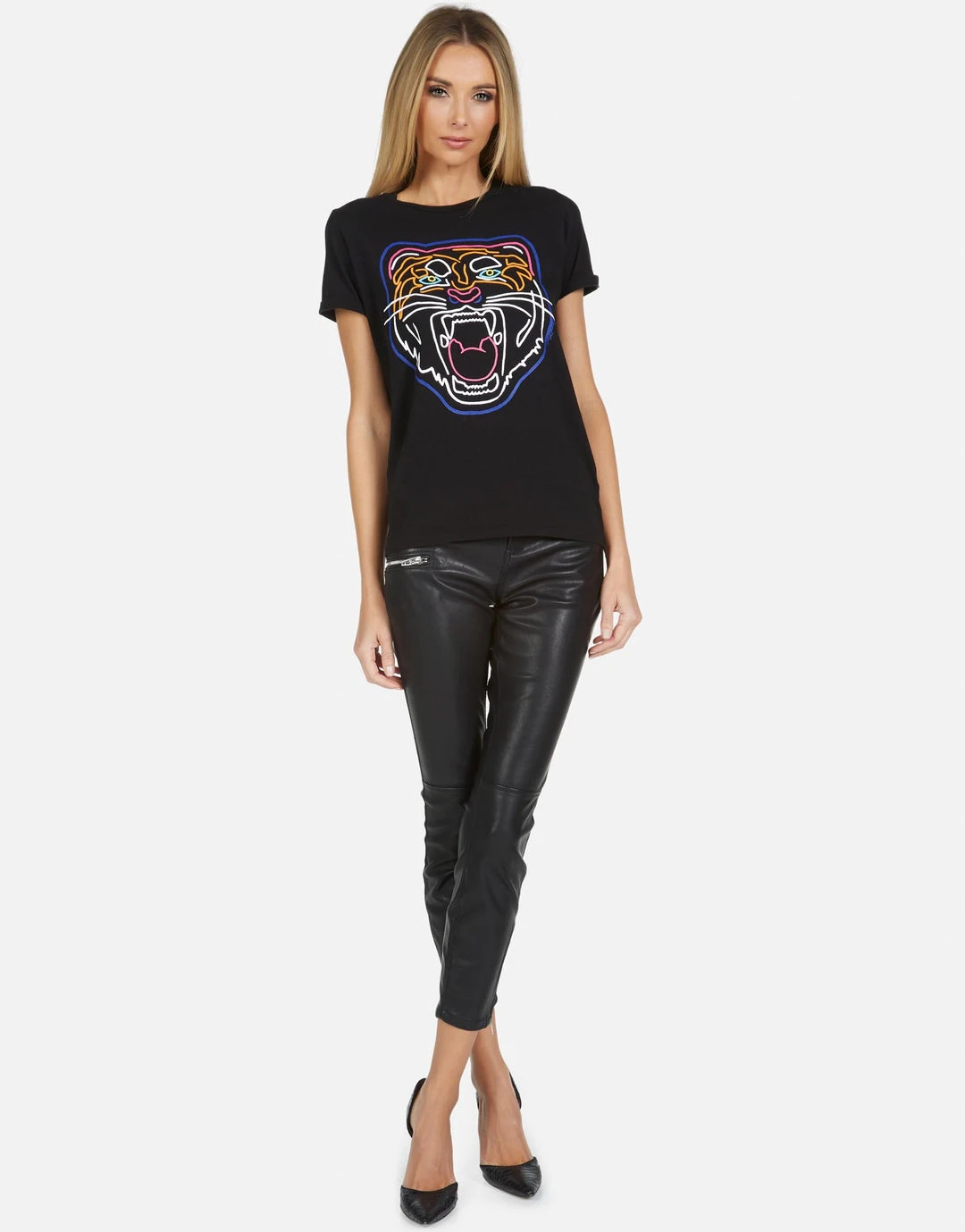 Neon Tiger on Ultra Soft Lightweight Tee in Black by Lauren Moshi.