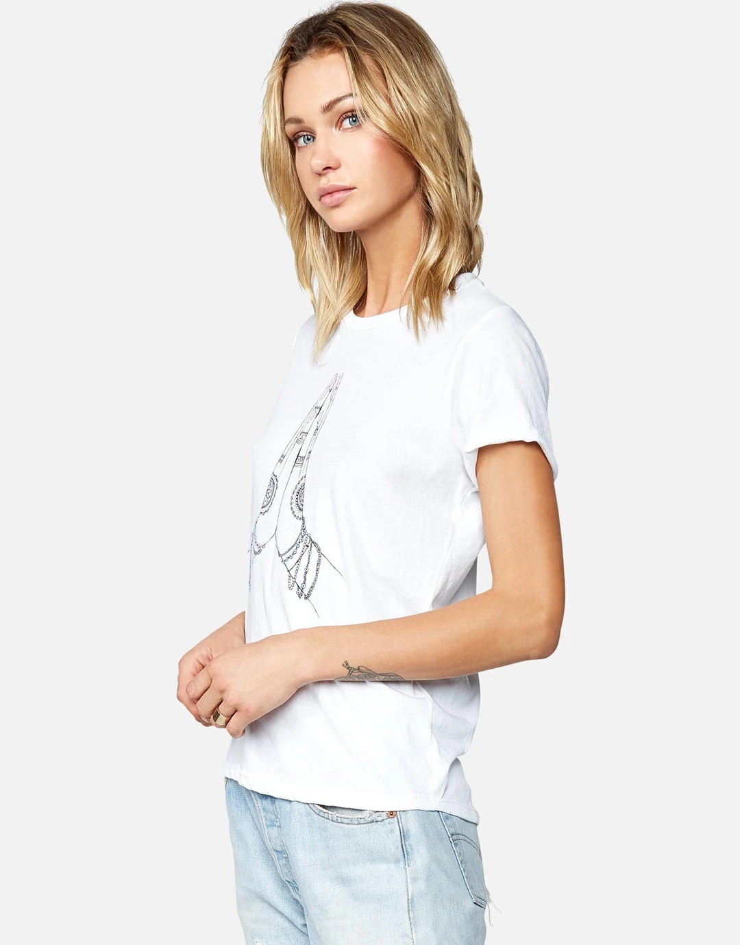 Prayer Hands Printed on Ultra Soft Lightweight Tee in White by Lauren Moshi.