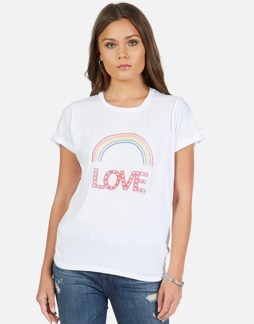 Rainbow Love Printed on Ultra Soft Lightweight Vintage Tee by Lauren Moshi.