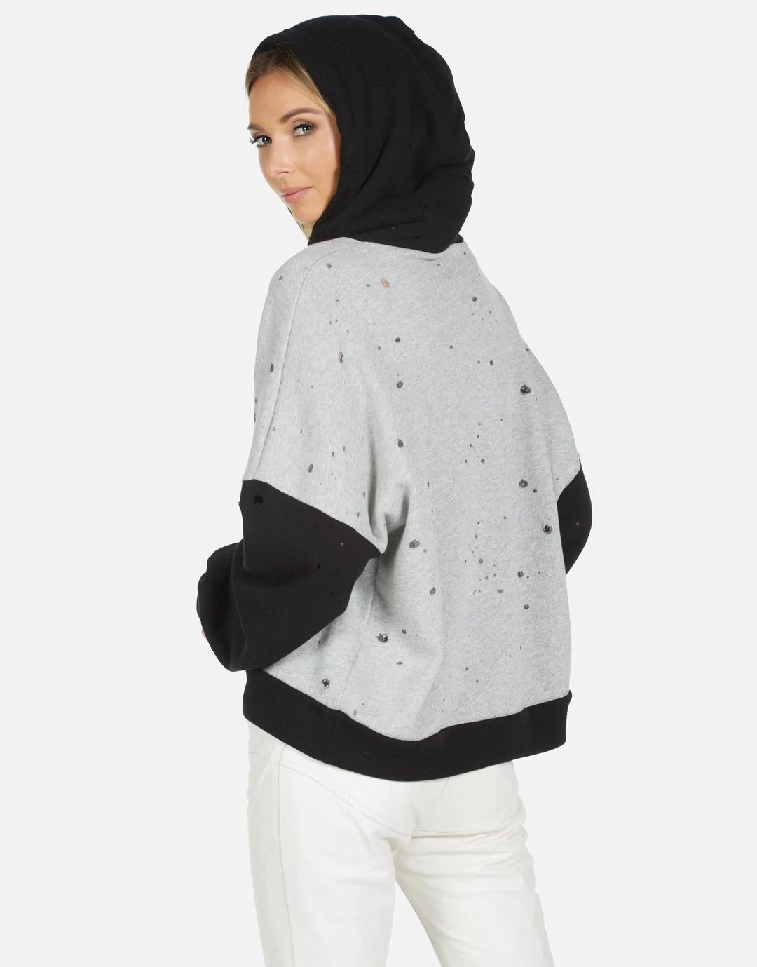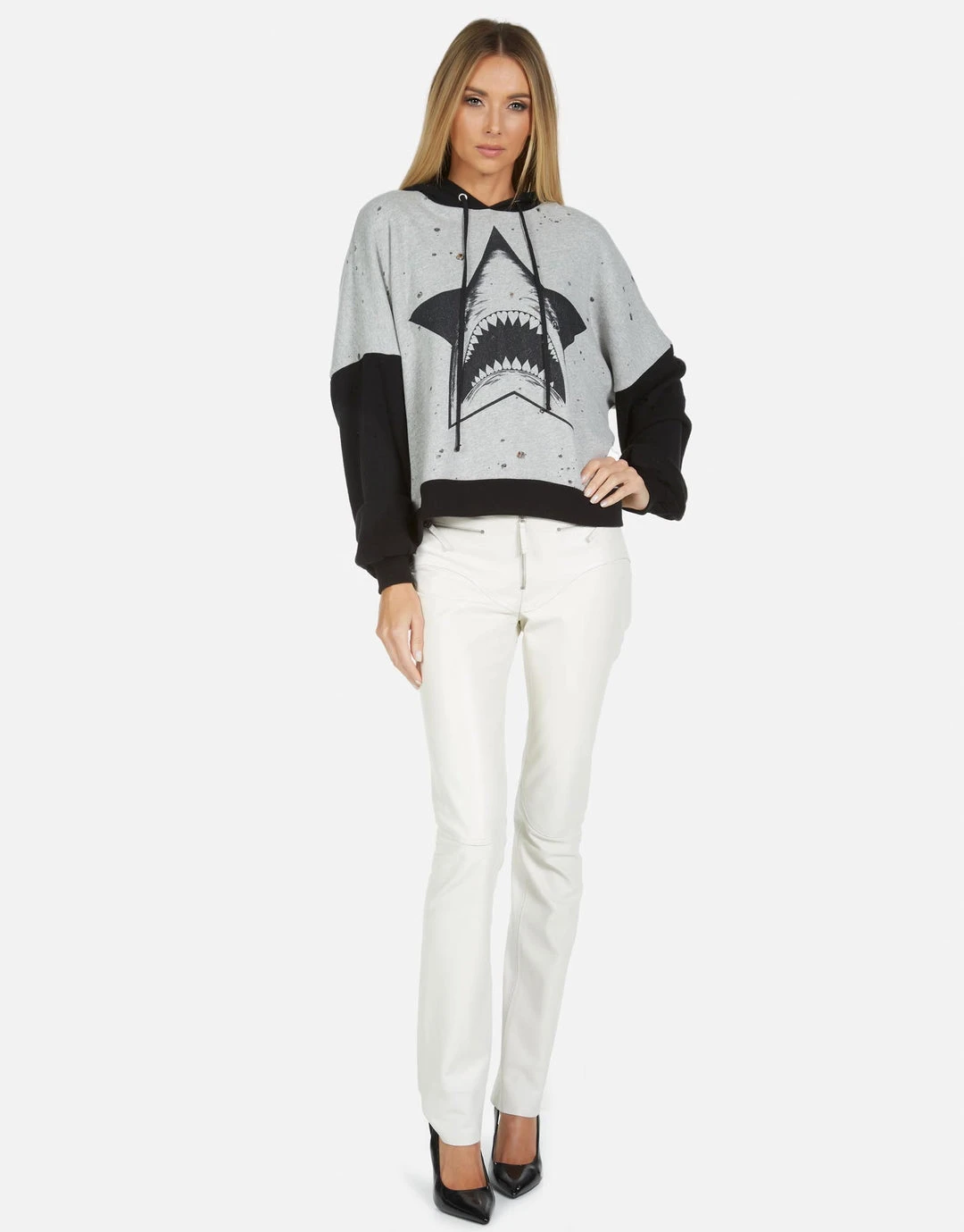 Star Shark Printed on Ultra Soft Lightweight Hoodie in Heather Grey/Black by Lauren Moshi.
