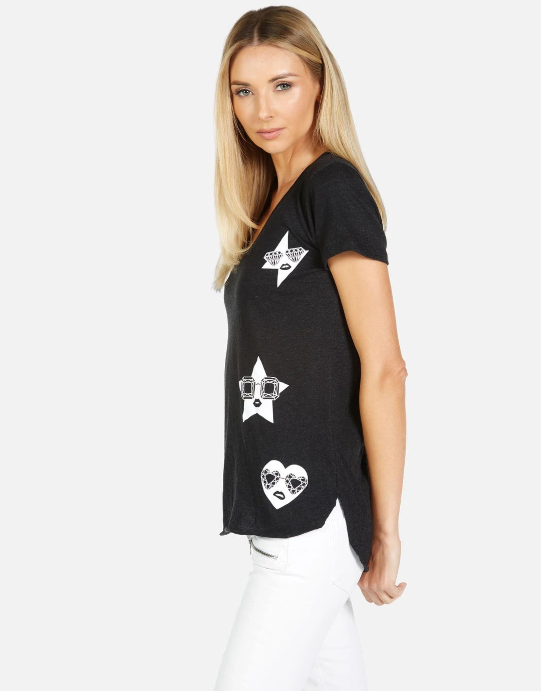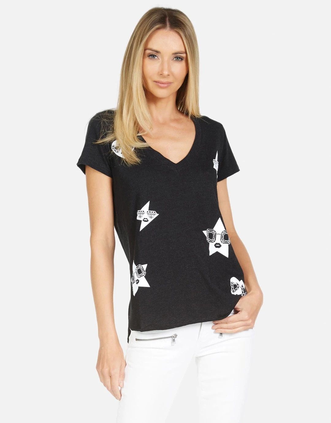 Mini Bling Faces Printed on Ultra Soft Lightweight Tank in Heather Black by Lauren Moshi.