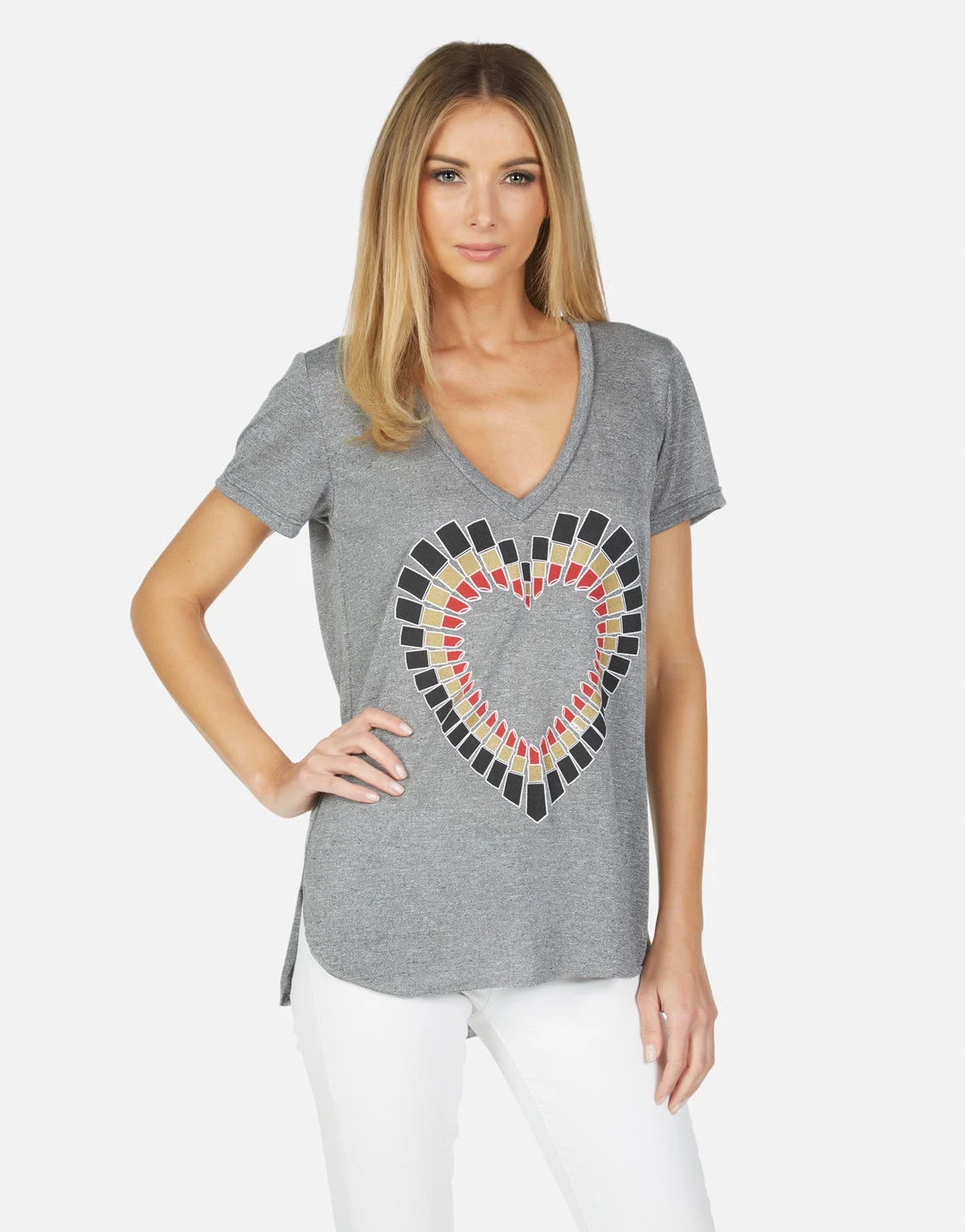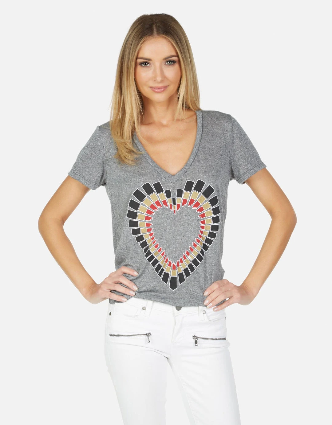 Lipstick Lip Printed on Ultra Soft Lightweight Tee in Heather Grey by Lauren Moshi.