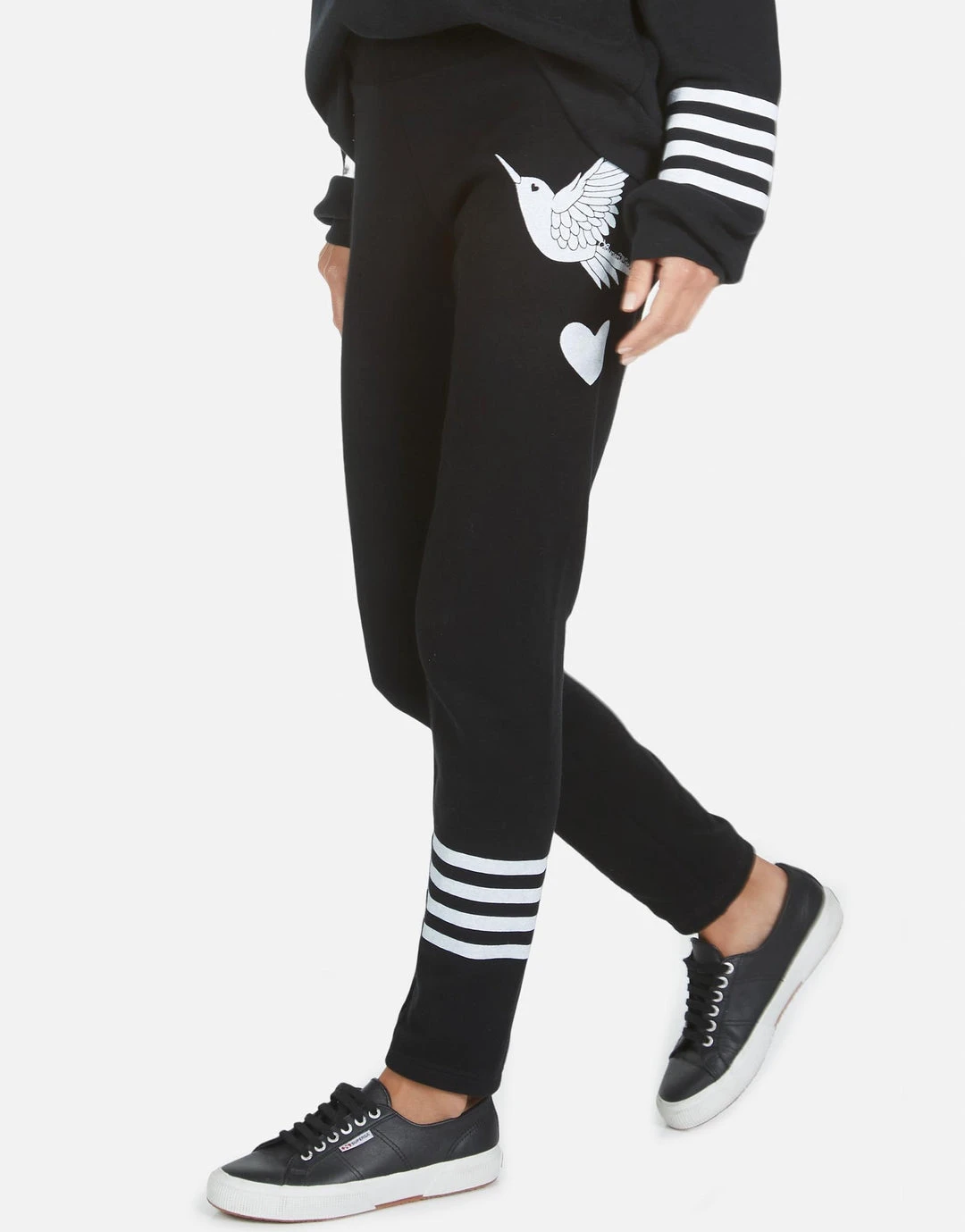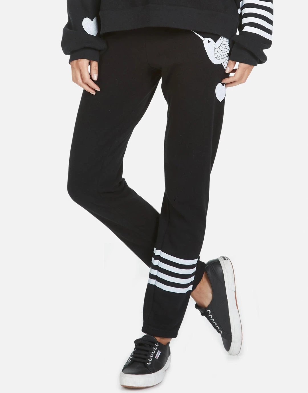 Hummingbird Printed on Ultra Soft Lightweight Sweatpant in Black by Lauren Moshi.