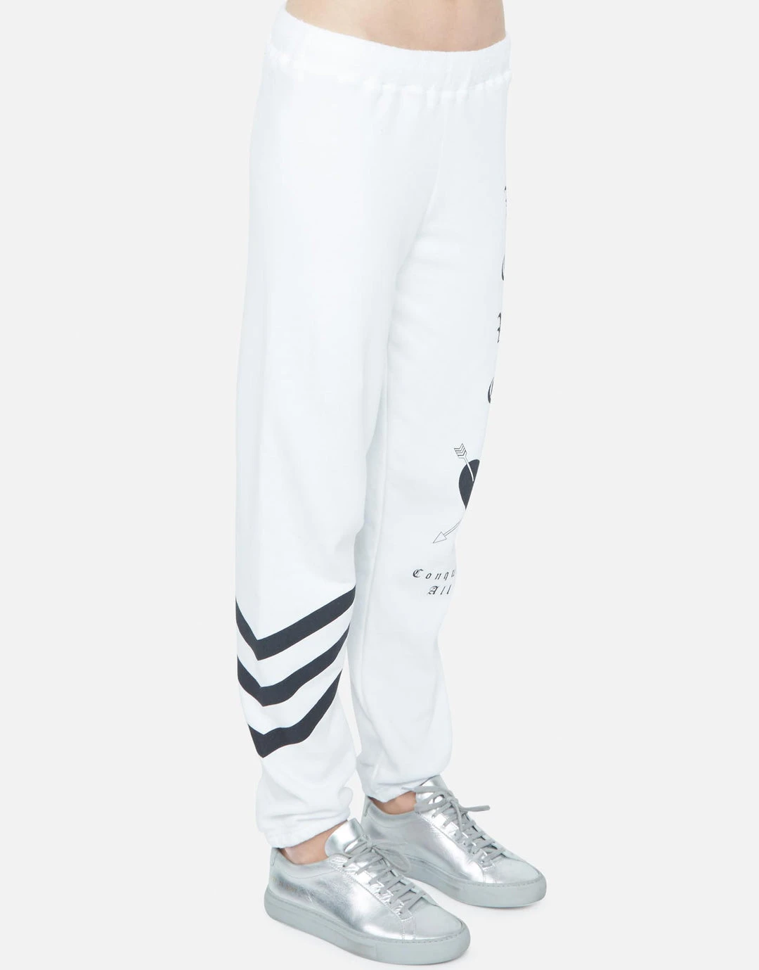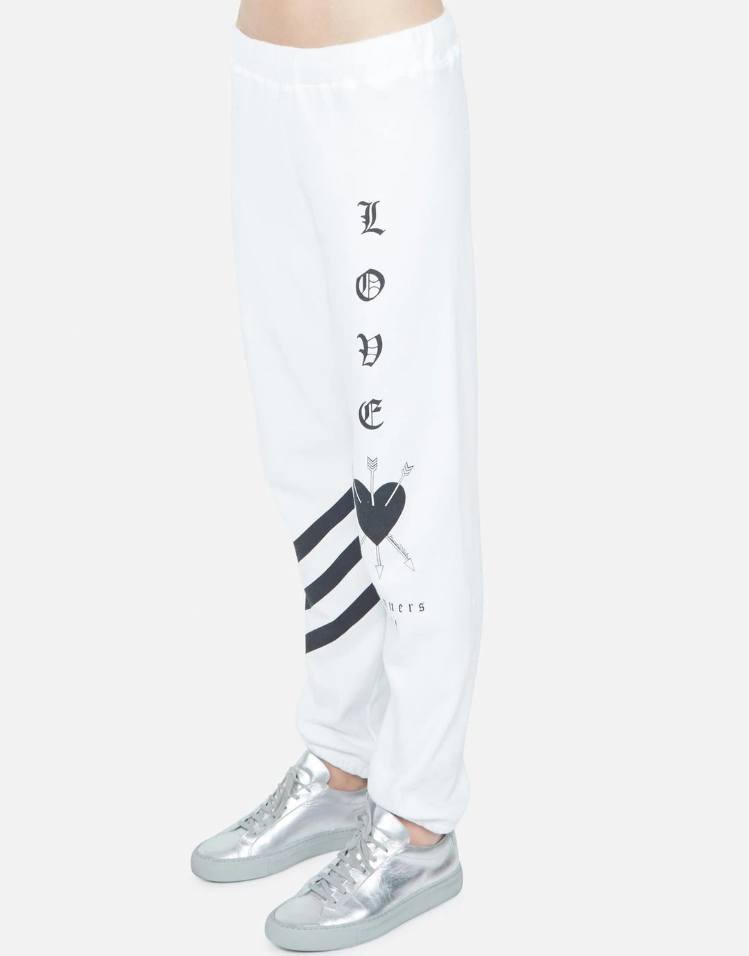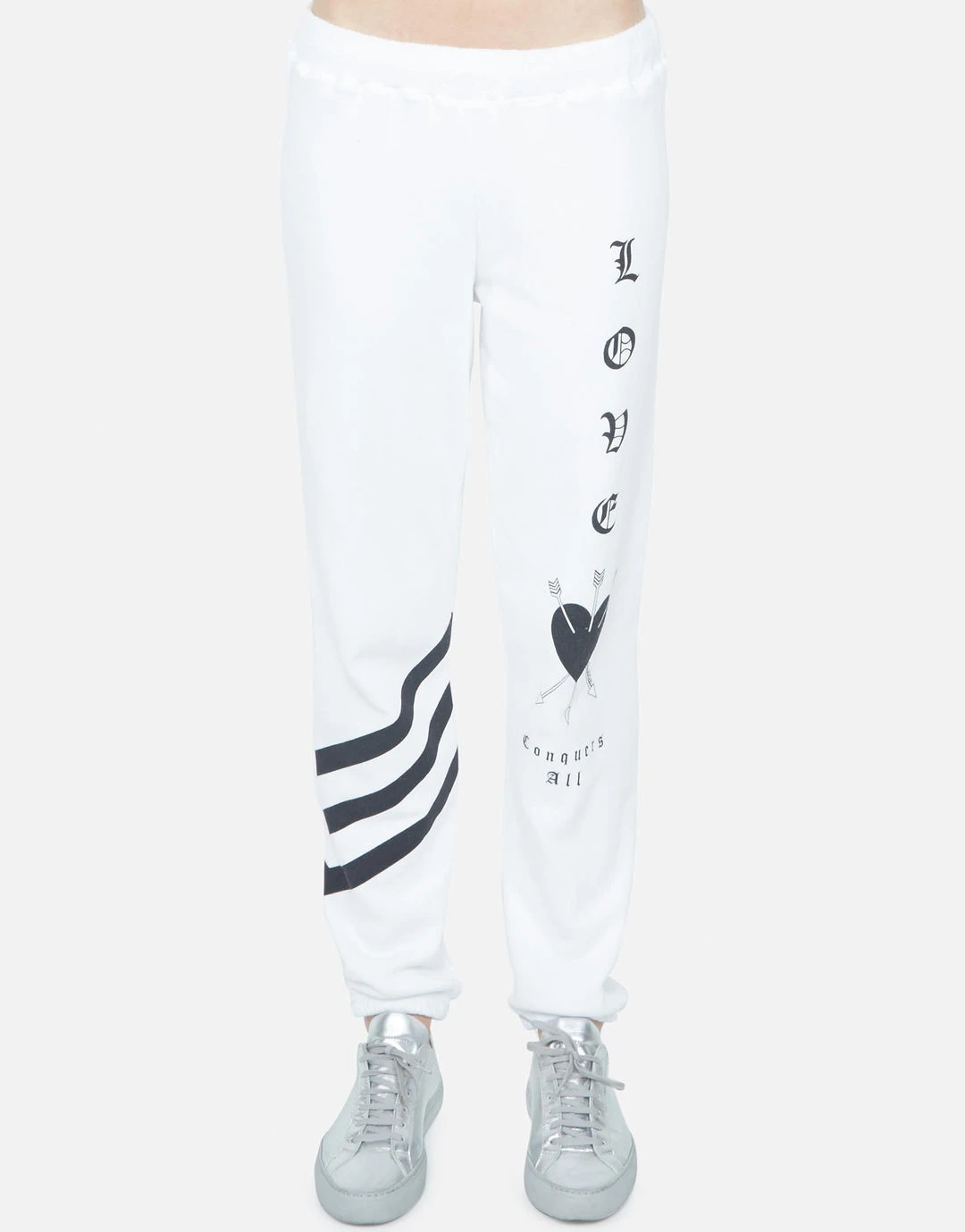 Love Conquers All Printed on Ultra Soft Long Sweatpant in White & Black by Lauren Moshi.