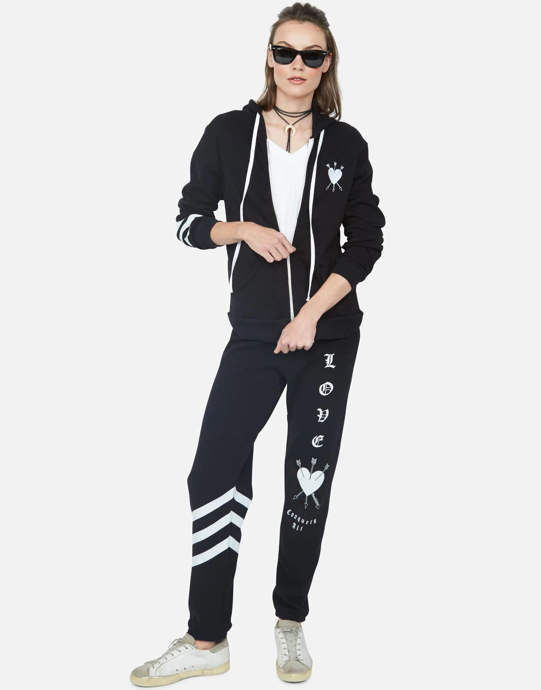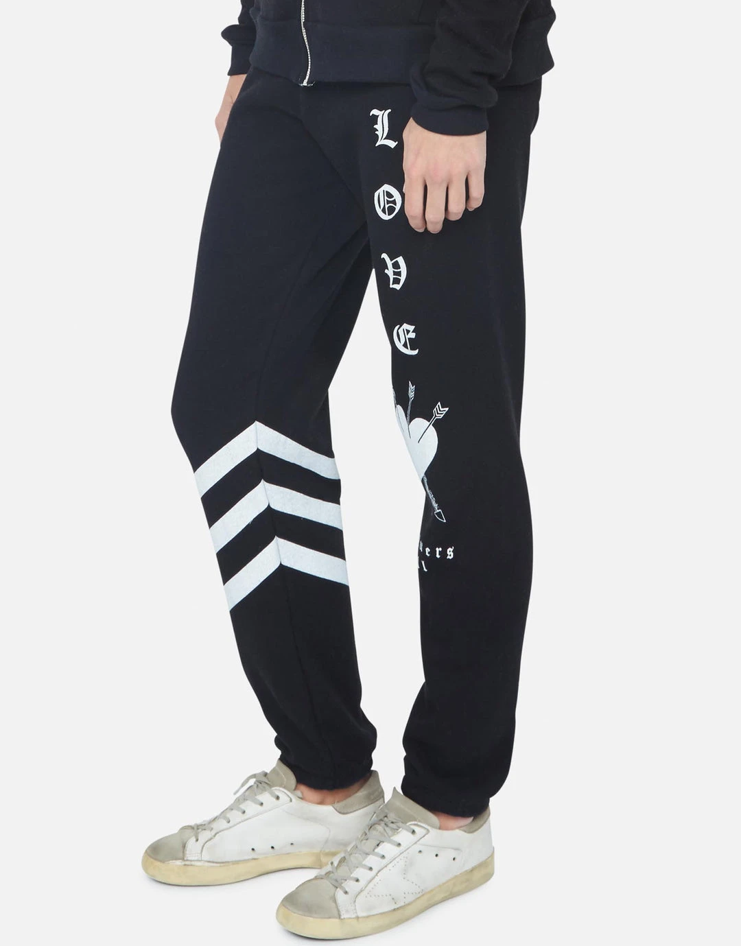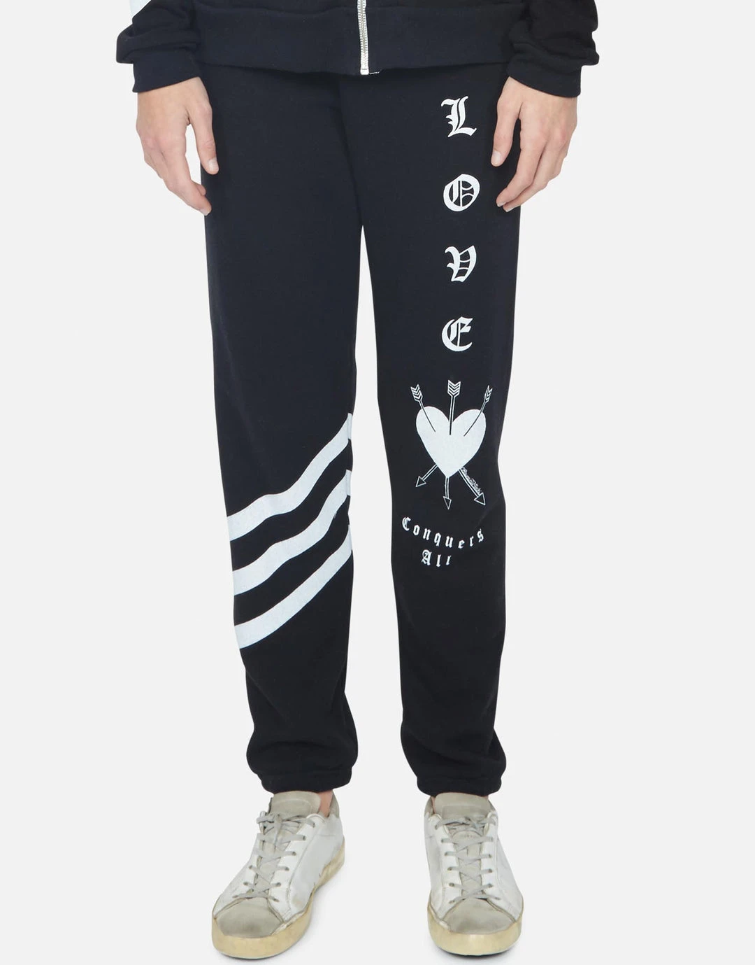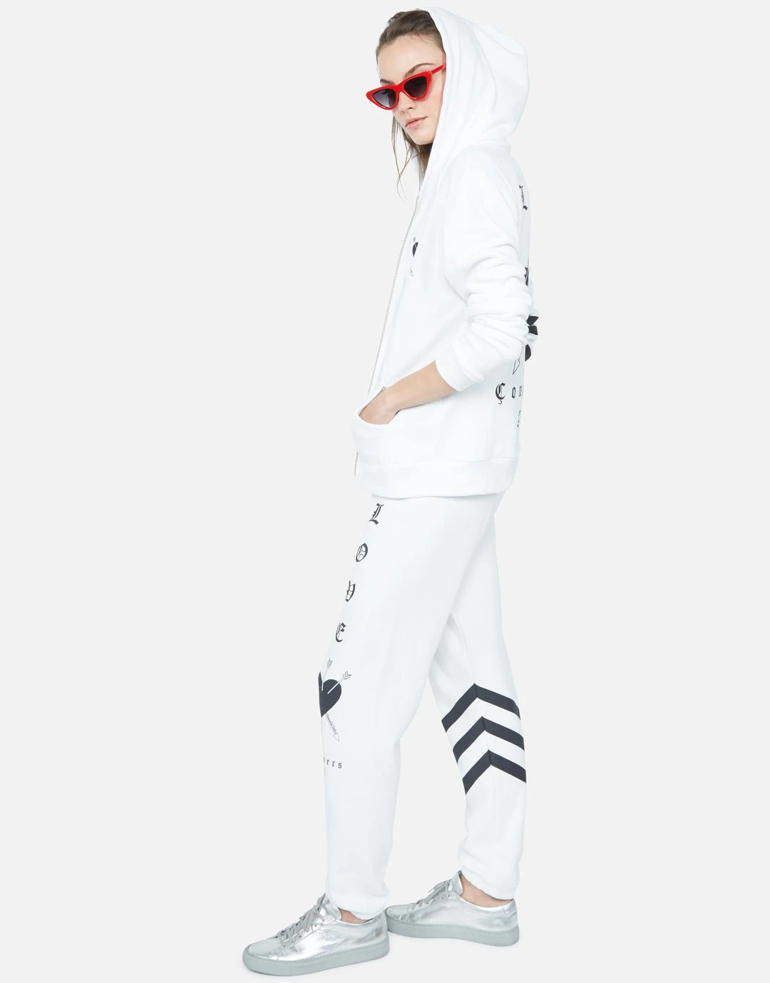 Love Conquers All Printed on Ultra Soft Long Sweatpant in White & Black by Lauren Moshi.