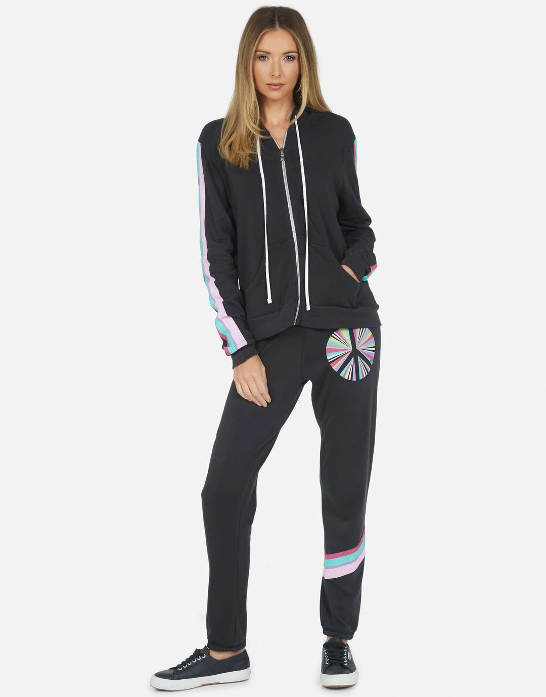 Rainbow Ray Peace Printed on Ultra Soft Lightweight Sweatpant in Heather Grey by Lauren Moshi.