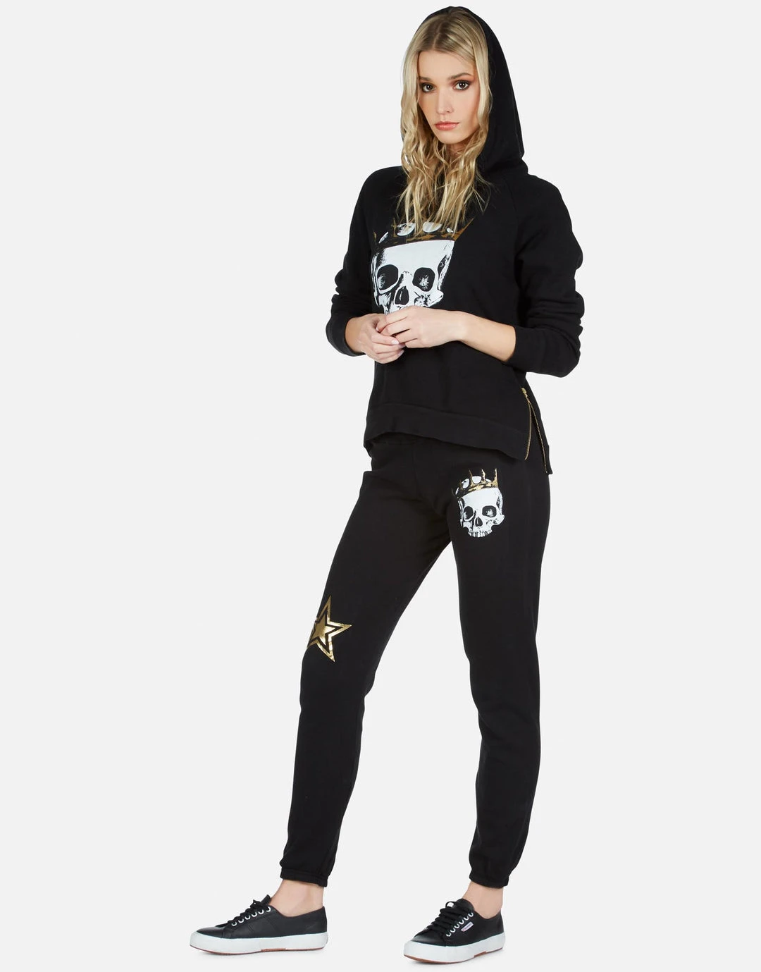 Royal Skull Printed on Ultra Soft Lightweight Sweatpant in Black by Lauren Moshi.