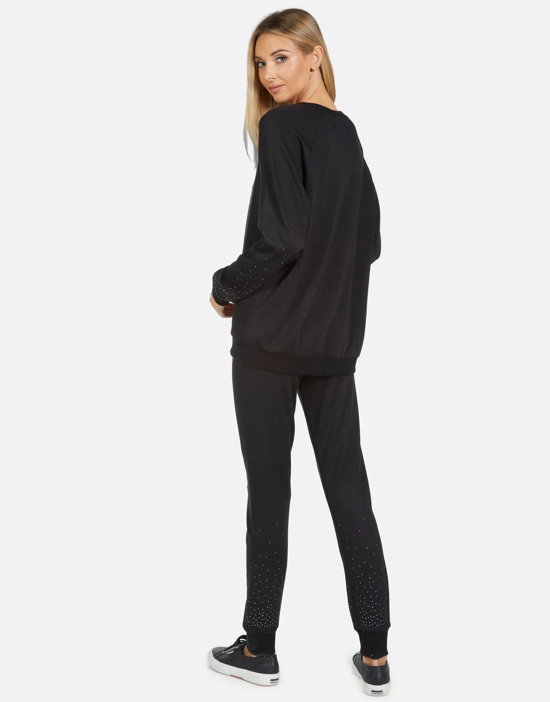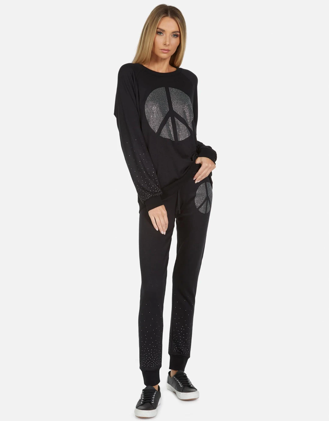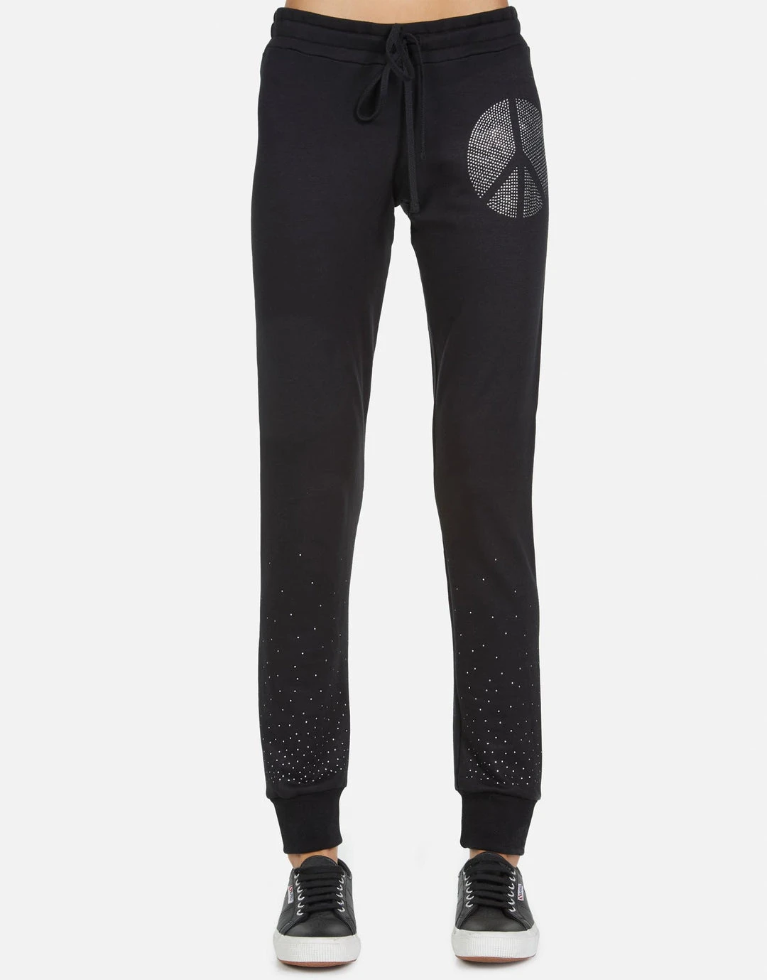 Crystal Peace on Ultra Soft Lightweight Sweatpant in Black by Lauren Moshi.