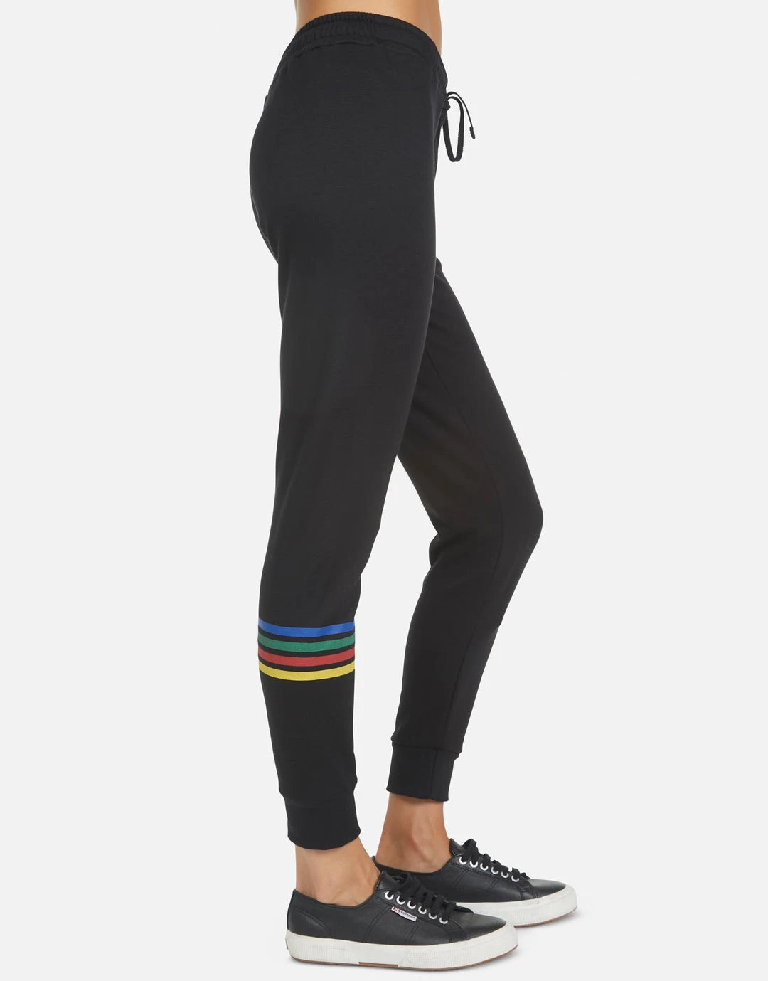Lucky Happy Face Printed on Ultra Soft Lightweight Sweatpant in Black by Lauren Moshi.