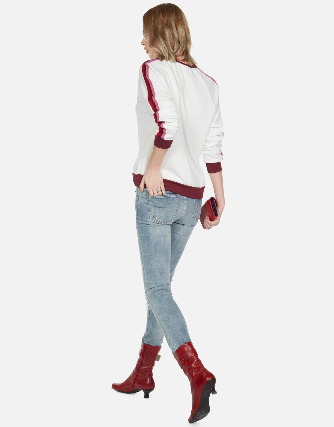 Skull Flower Printed on Ultra Soft Lightweight Raglan Pullover in Milk by Lauren Moshi.