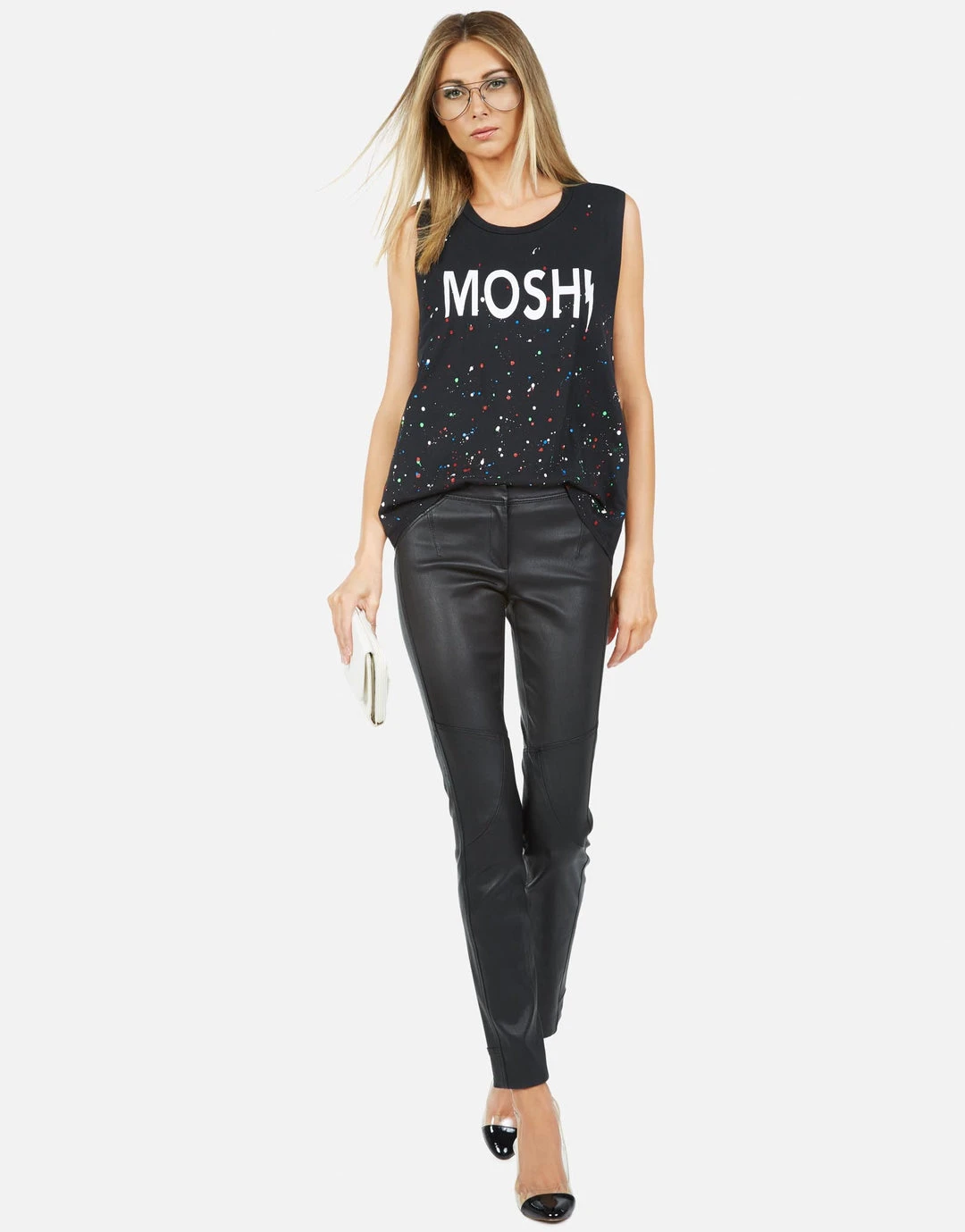 Moshi Printed on Ultra Soft Lightweight Muscle Tank in Onyx Multi Splatter by Lauren Moshi.