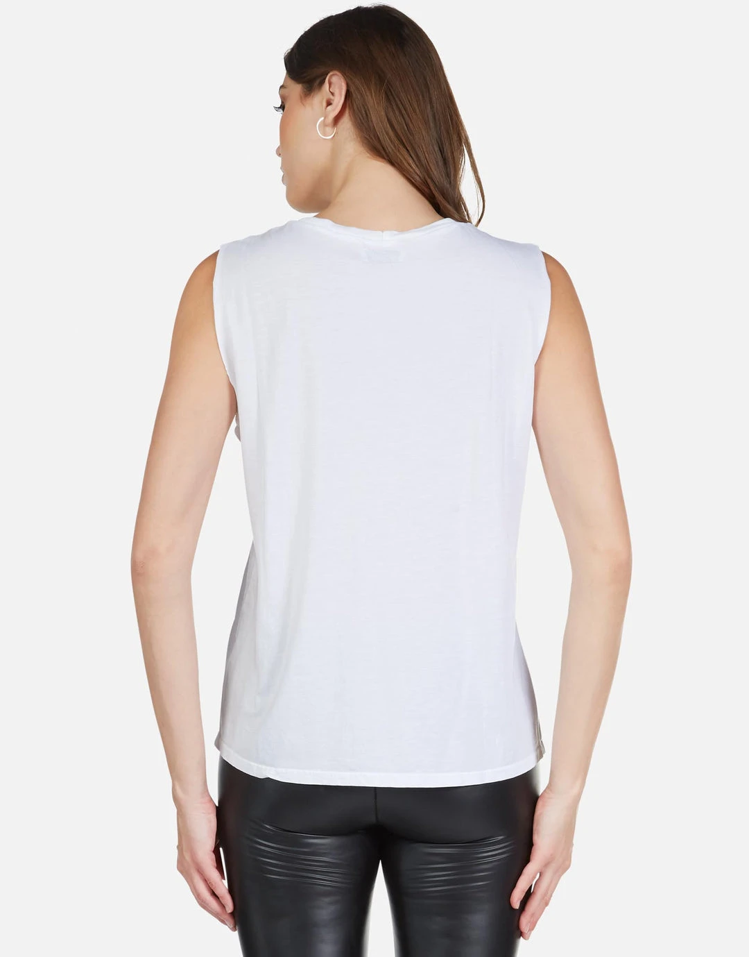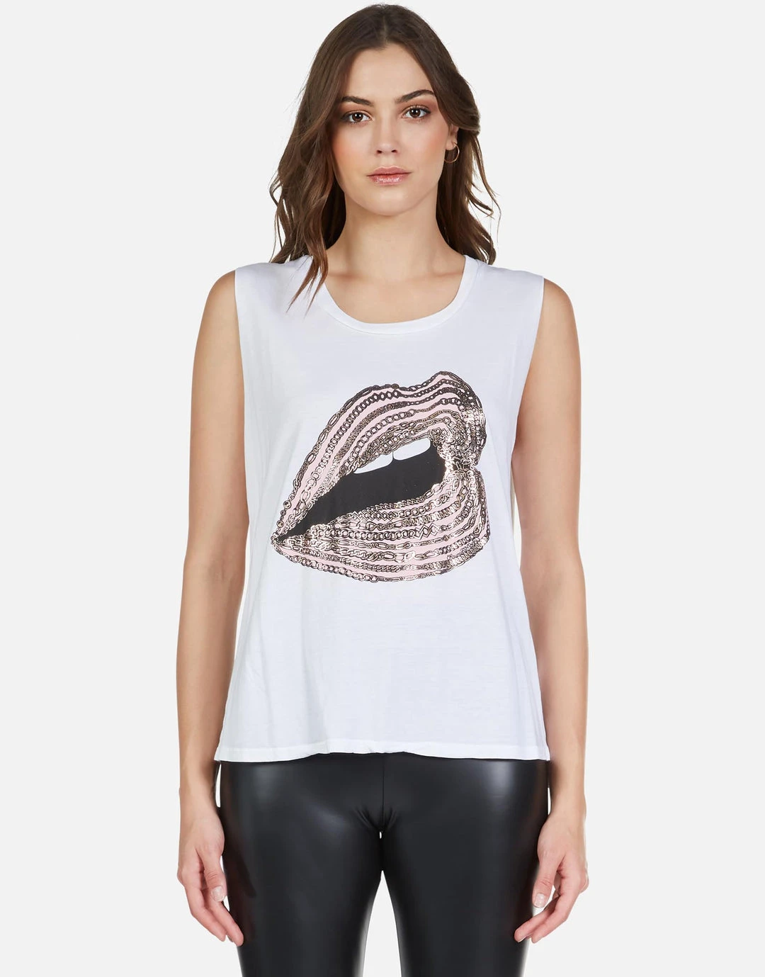 Rose Gold Foil Chain Lip Printed on Ultra Soft Lightweight Tank in White by Lauren Moshi.