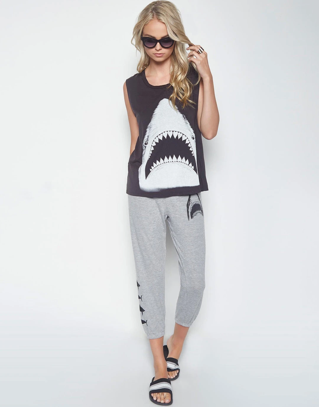 Large Shark Printed on Ultra Soft Lightweight Tank in Onyx by Lauren Moshi.