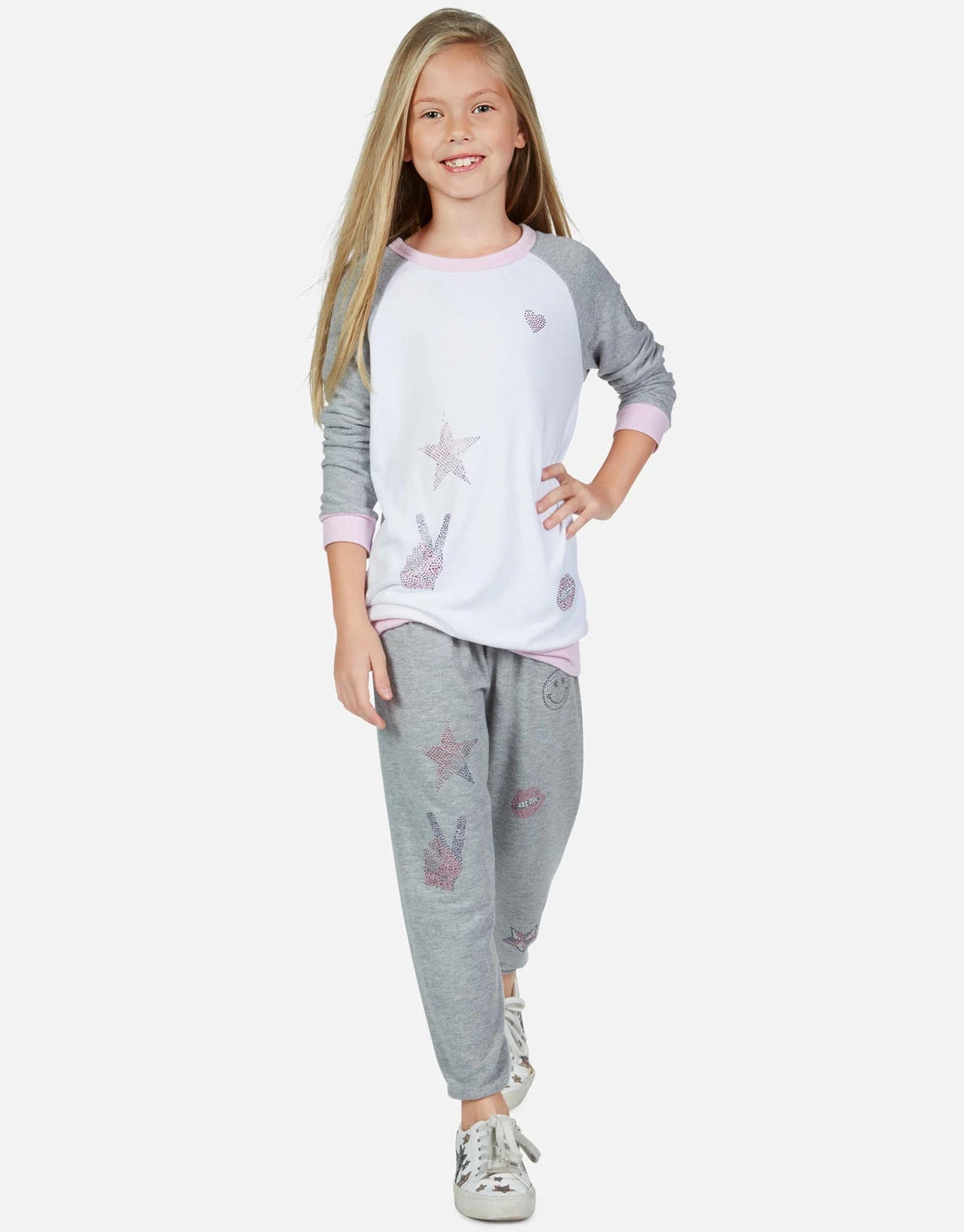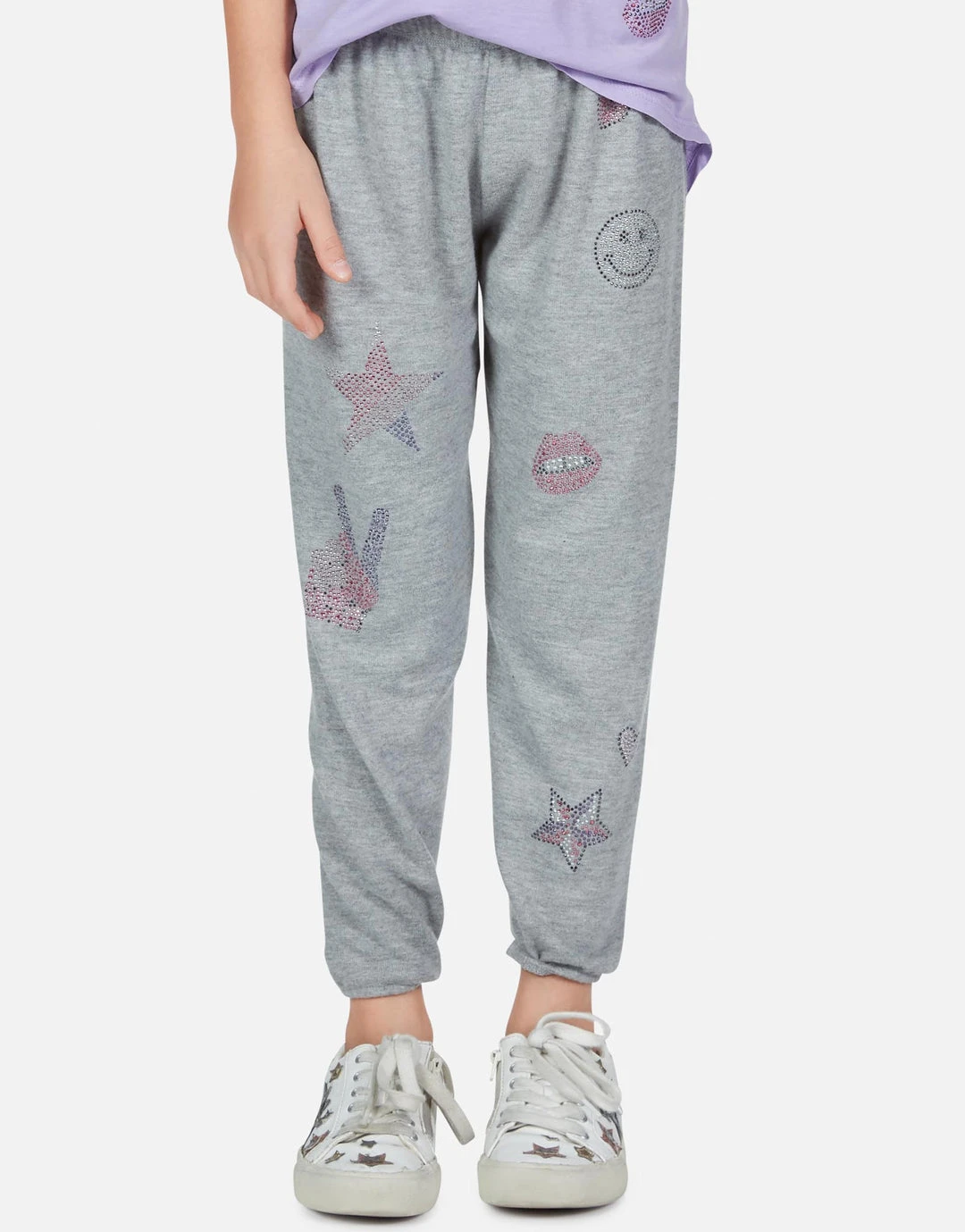 Crystal Elements on Ultra Soft Lightweight Girls Sweatpant in Heather Grey by Lauren Moshi.