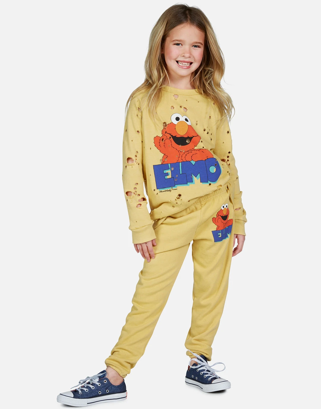 Elmo Printed on Ultra Soft Lightweight Girls Sweatpant in Pollen by Lauren Moshi.