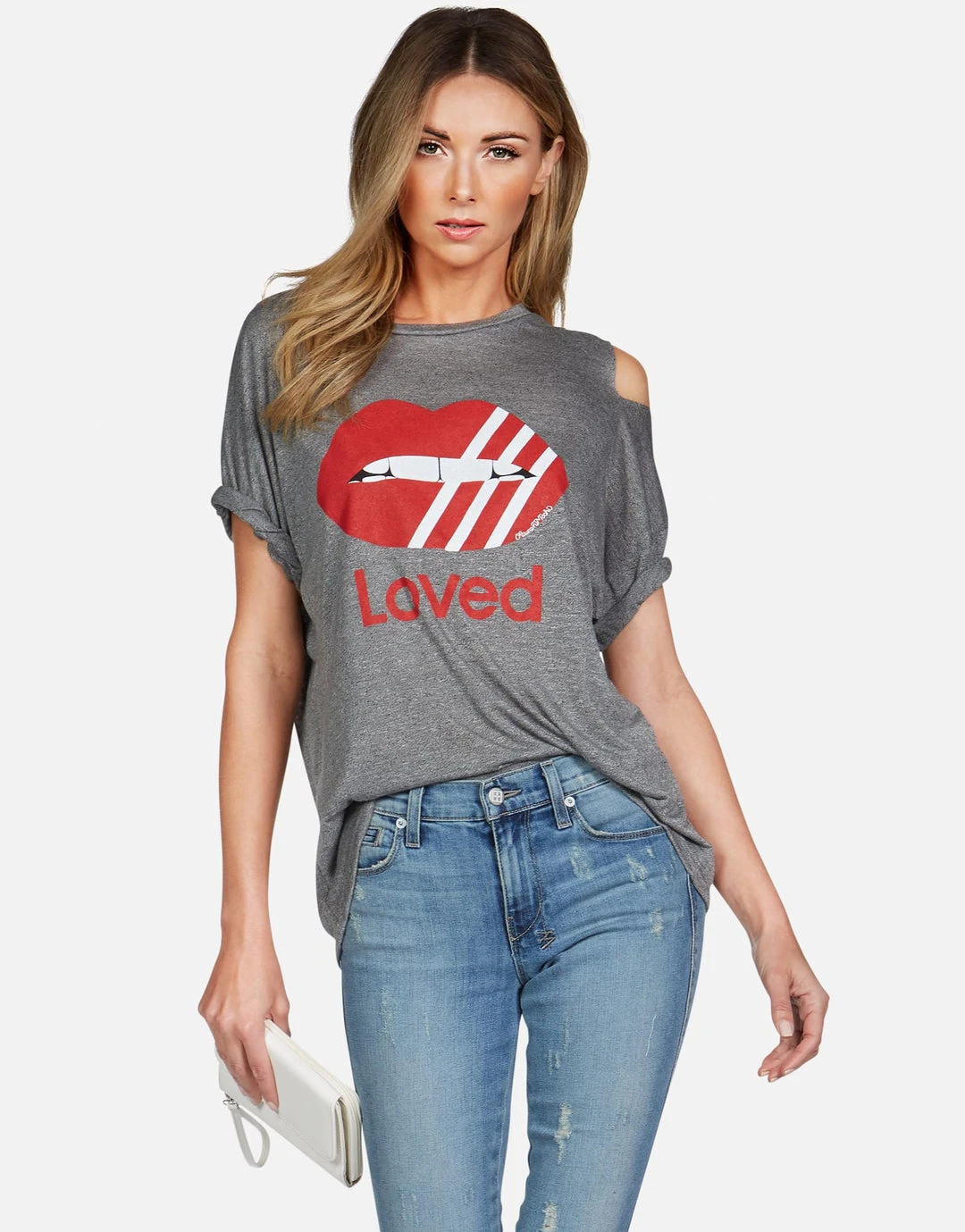 Striped Mouth Loved Printed on Ultra Soft Lightweight Tee in Heather Grey by Lauren Moshi.