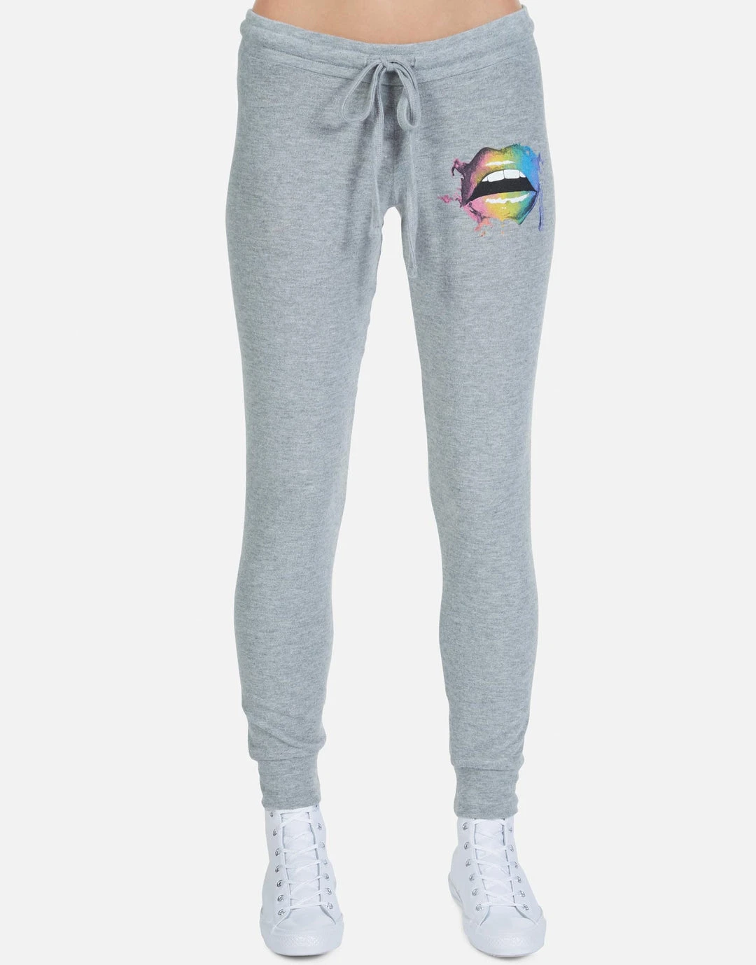 Rainbow Smudge Lip Printed on Ultra Soft Lightweight Sweatpant in Heather Grey by Lauren Moshi.
