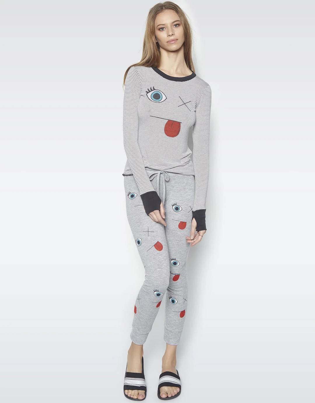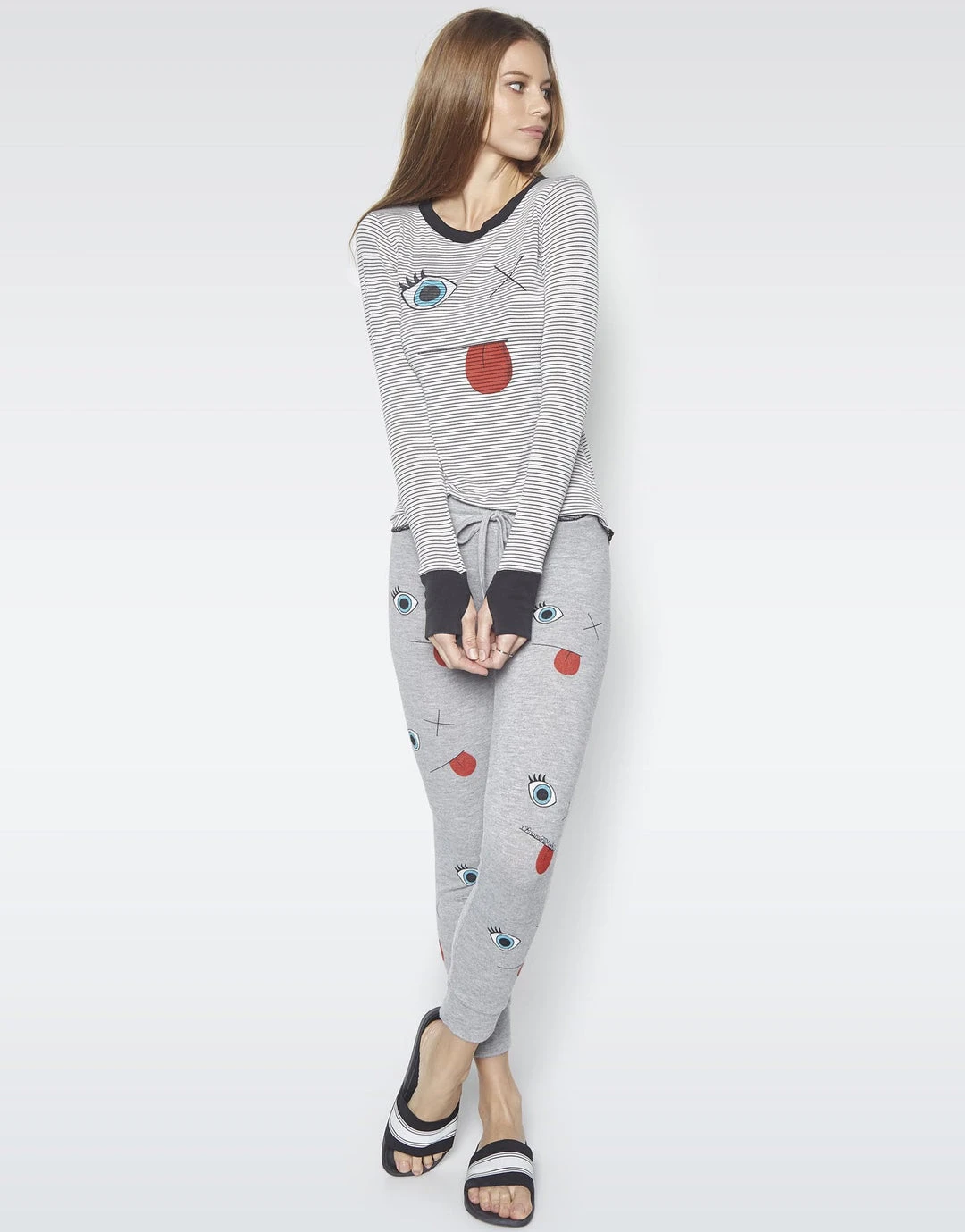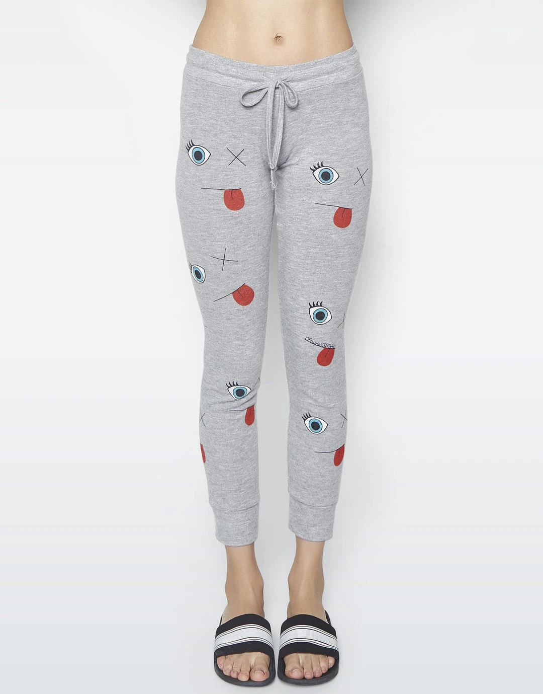 Smile Please Printed on Ultra Soft Classic Sweatpant in Heather Grey by Lauren Moshi.